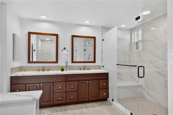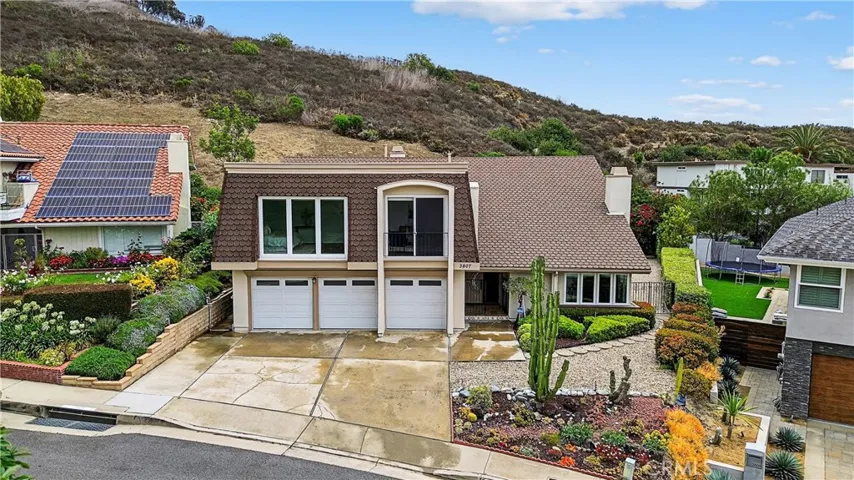 Enjoy ocean views from loft, primary suite, upstairs loft & deck as this upgraded residence is located near top of the hill. The 11,200 sq ft lot is well maintained & offers ultimate privacy, spacious side yard with pergola & room for pool. Upon entering new double doors with leaded glass you’ll notice luxury plank vinyl flooring throughout, 2 fireplaces in living room & family room & walk behind bar as you enter gourmet kitchen. The kitchen boasts Kitchen Aid self cleaning oven, microwave, 5 burner electric stovetop, lazy Susan, trash compactor & Moroccan style stainless steel backsplash. Ideal downstairs guest bedroom with cedar lined, mirrored closet near 3/4 bathroom offers private access to rear yard. Downstairs bathroom features Phylrich faucet, vanity desk cabinet & rainglass shower door. Primary bedroom & bathroom offers double sinks plus cedar lining & mirrored closet. Other upstairs bedroom also offers cedar lined closet, built in cabinetry & laundry chute. Individual laundry room near downstairs bedroom features gas & electric. 3 car garage offers new epoxy flooring & Culligan water softener. Intercom is located at front door, kitchen & primary bedroom. Must See as this home is “Move in Ready”.