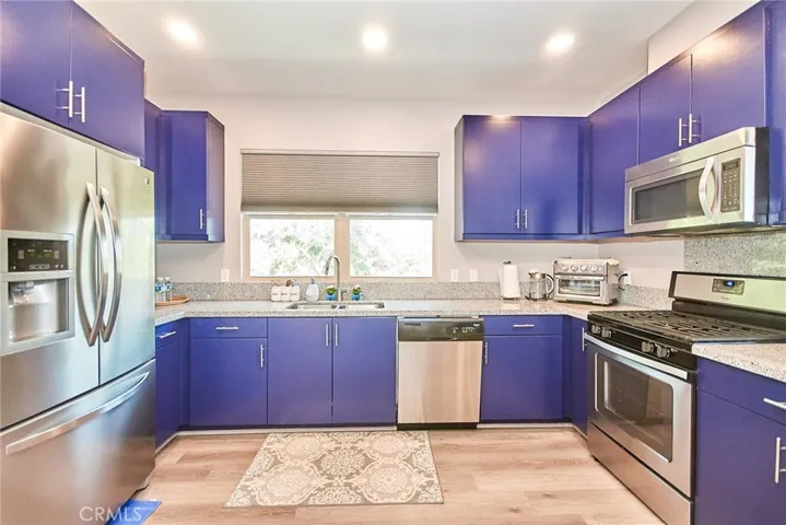 This TOP FLOOR, CORNER property overlooks one of Orange County’s hottest attractions today – the Anaheim Packing House and historic downtown Anaheim! This is urban living at its finest with all the amenities of a luxury condo, while being walking distance from the Anaheim Packing House, the Make building, Center Street Promenade, Farmer’s park and much much more. Enjoy The Domain’s rooftop patio with great seating and views of the nightly Disneyland fireworks. The community also includes elevators for convenient access to the units, a pool, fire pits, gas barbecues and automatic gates for entering the motor courts. The property boast 2 bedrooms, 2 full bathrooms, 2 car garage, private balcony and 10-foot ceilings throughout. The master suite is spacious with a walk-in closet, dual sinks and large shower. From the main living space you have views of downtown Anaheim and the Packing House/Farmer’s Park. The home has central AC and heating, low-E dual pane windows, a tankless water heater and in unit washer/dryer. There is also a turnkey plug and play entertainment system with projector, projector screen, and full surround sound system that have all been professionally installed – HDMI and 1080P quality. This is the perfect place to come home to after work and walk across the street for dinner or dessert. Don’t let this opportunity pass you by!