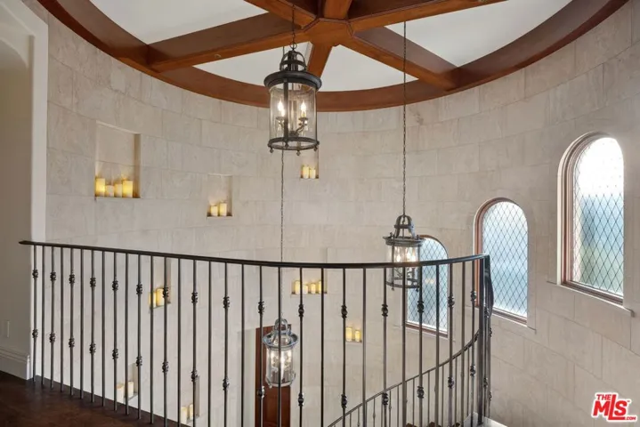 Nestled on a coveted 16,008 sq. ft. lot in one of North Kentwood’s most desirable neighborhoods, this extraordinary Mediterranean estate blends timeless elegance with modern luxury. Offering 8,733 sq. ft. of meticulously crafted living space and a 1,166 sq. ft casita, this private retreat showcases unparalleled craftsmanship and high-end finishes, including Italian marble, limestone, and natural woods, in a thoughtfully designed layout that exudes sophistication and warmth. The main residence features five bedrooms, seven bathrooms, and two half baths, complemented by a two-bedroom, one-bath guest house an ideal haven for multi-generational living or stylish guest accommodations. Both homes are fully equipped smart homes, powered by advanced Crestron technology, allowing seamless control of lighting, climate, security, and entertainment systems. Constructed with flame-retardant lumber, a robust water-softening and filtration system, solar panels, and a hard-wired security system with geo-fencing, the estate offers state-of-the-art innovation with enduring quality. Enter through the grand foyer, where soaring ceilings and a sweeping curved double staircase immediately set a tone of opulence. The open yet well-defined floor plan flows effortlessly between formal and informal living spaces. A stately formal living room with a gas fireplace and mahogany doors opens to the lush backyard, while the sophisticated formal dining room offers a perfect setting for elegant gatherings. The family room, featuring a striking coffered ceiling, pocket doors, and an outdoor fireplace, invites relaxation and seamlessly merges indoor and outdoor living. The heart of the home is an expansive kitchen equipped with high-end appliances, a La Cornue stove, a spacious marble island, and a separate chef’s kitchen for effortless entertaining. A full-service wet bar enhances the home’s hosting capabilities. The main level also includes a private office with coffered ceilings and French doors opening to the front loggia and garden, a hand-carved limestone staircase spiraling around a three-story touret with niche lighting, an adjacent powder room, and an elevator for added convenience. Designed for both grand entertaining and serene retreats, the backyard is a true sanctuary, featuring a large salt-water pool and spa, two outdoor fireplaces, and a tranquil fountain surrounded by lush, mature landscaping that offers exceptional privacy. Upstairs, the primary suite is a luxurious escape, complete with a private balcony offering sweeping views, a cozy fireplace, a spa-inspired ensuite bath with heated floors, a soaking tub, a separate shower, dual vanities, and a refrigerated bar area. Expansive dual closets provide impeccable storage. Four additional en-suite bedrooms ensure comfort and privacy for family and guests, while a conveniently located laundry room adds everyday ease. A first-floor en-suite bedroom, with a refrigerated minibar and French doors to the garden, offers flexibility and accessibility. Entertainment and lifestyle amenities abound, including a temperature-controlled wine cellar for collectors, a private state-of-the-art movie theater with custom seating, an adjacent full-service wet bar and snack center with microwave and refrigerated drawers, a full salon with hair and nail stations, a dedicated gift wrapping, hobby, and homework center, plus a large gym for wellness enthusiasts. The separate guest house offers fully independent living with a custom kitchen, washer/dryer, two large bedrooms, a full bath, and a separate outdoor pool bath, ensuring extended family or guests enjoy complete comfort and privacy. A four-car garage and a gated driveway provide secure parking for six or more vehicles, adding everyday practicality to the estate’s grand presence. This rare offering presents a unique opportunity to own an estate that flawlessly blends luxury, functionality, and exquisite design all within the vibrant heart of Westchester.