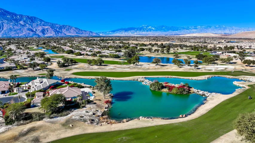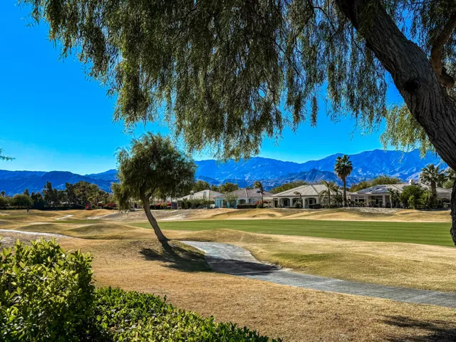 STILL AVAILABLE NOVEMBER 16 THROUGH DECEMBER 27, 2025 (seasonal rates apply). Beautiful, turn-key furnished home in the gated community of Mira Vista at Mission Hills. This former model home sits on one of the most premier lots, taking advantage of million door views from both inside and out. The Escondido floor plan offers 2,331 sf with 3 bedrooms, 2 bathrooms, great room with gorgeous furnishings and granite fireplace, custom wood coffered ceiling, and wet bar. The granite kitchen with island, nook, and breakfast bar has been updated with KitchenAid stainless steel appliances and espresso stained cabinetry, and opens to the great room. The rear yard offers a breath taking panoramic view of multiple golf course fairways, lakes and mountains, and goes on forever! The covered patio offers shade while the saltwater pool and spa maximize complete sun exposure.