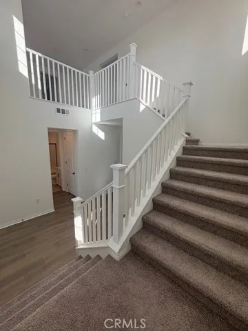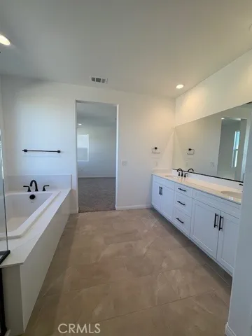 Welcome to the Presley plan in Legacy at Braverde masterplan in Menifee. As you enter, a grand 2 story entry welcomes you. The main floor offers an expansive great room, and the beautiful sunroom with a vaulted ceiling creates a vibrant light and bright feeling, a gourmet kitchen includes white cabinets and quartz counters, and an immense center island—perfect for entertaining and a cook’s dream come true! The whole house has 8-foot interior doors, flooring includes a combination of carpet in bedrooms, hallways and stairs, wood laminate flooring on the main level and 12 x 24 tile flooring in all bathrooms and laundry room. A convenient first floor bedroom/ full bathroom and a spacious 2-car + storage garage completes the first level of the home. This home also features an open white stair railing leading up to the second level where you’ll find a large loft and three inviting bedrooms to include a luxurious owner’s suite complete with an expansive walk-in closet and deluxe bath with separate shower and soaking tub. Estimated completion is September
