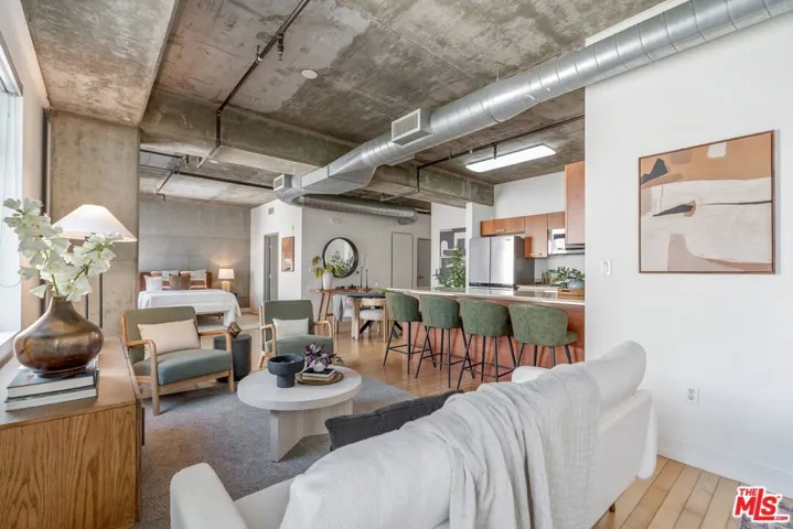 Experience the best of Downtown LA South Park living in this stunning 2 bed, 2 bath condo at Market Lofts! This industrial loft features an open-concept layout (no dividing bedroom walls) and a spacious balcony overlooking a serene courtyard. It’s a corner unit with no shared walls for ultimate privacy. The primary bedroom boasts a huge walk-in closet, while the secondary bedroom also offers a walk-in-closet, providing ample storage space. Both bathrooms feature full bathtubs with showers for ultimate comfort. Enjoy modern conveniences with central AC/heat (replaced in 2023), in-unit combo washer/dryer, and a fully-equipped open kitchen with a refrigerator, oven, microwave, and more. Market Lofts offers unbeatable amenities, including a theater room, fitness center, pool, spa, BBQ area, and secured garage parking. With 24/7 front desk service, security, and on-site management, convenience and peace of mind come standard. Located in a prime spot near Whole Foods, Pershing Square, Crypto Arena, LA Live, The Bloc, The Metro, and an array of top restaurants and vibrant shops. Ralph’s is conveniently attached to the building.