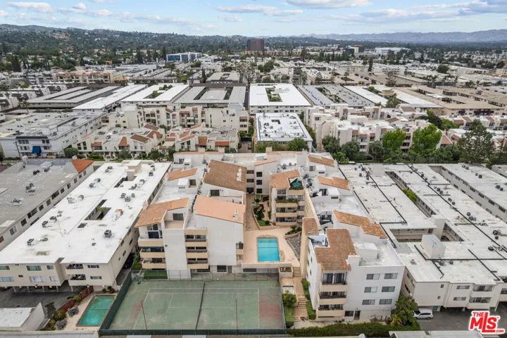Presenting a two-story penthouse nestled in the Racquet Club complex of Encino, California. Spanning 1,459 sq. ft., this exquisite residence boasts soaring ceilings, two bedrooms, and two recently renovated bathrooms, offering sophistication and comfort. Upon entering the foyer, you are greeted by a sun-drenched living and dining area. Floor-to-ceiling windows flood the space with natural light. Step outside onto the balcony and you’ll discover views of the gorgeous Koi pond and inviting swimming pool. The recently remodeled kitchen features pristine quartz countertops, a sleek built-in cooktop, brand-new refrigerator, oven, dishwasher, and a built-in convection oven. The bathrooms have also been thoughtfully updated with modern finishes. The main floor is home to a serene master suite, tucked away at the end of the hallway for ultimate privacy, complete with a beautifully renovated en-suite bathroom and walk-in closet. An additional guest bathroom in the hallway adds convenience for visitors. In-unit washer and dryer add to the convenience of modern-day living. On the upper level, you’ll find the second bedroom with access to your own private rooftop retreat – an entertainer’s dream space, perfect for soaking in the California sunshine, hosting unforgettable gatherings, or admiring the views of the green hills to the north and the iconic valley to the east and south. In addition to the tennis courts, a clubhouse, and secure underground parking, the Racquet Club complex offers a Koi pond and sparkling pool.