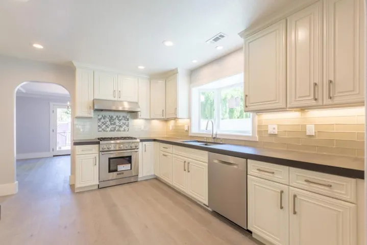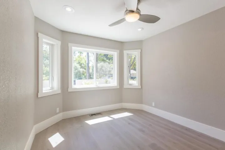 Completely remodeled home on large lot conveniently located in Old Palo Alto in a 5 unit development, within a short driving distance to downtown. A two-story 4 bedroom, 3 full bath home at approximately 2500 sq ft. This home includes kitchen with granite counters, gas stove, refrigerator and dishwasher. Separate dining room and family room; dining room opens to back patio with French doors. Living room includes gas starter fireplace with french doors leading to back private patio. Central air conditioning with laundry room on second floor of home. Re-circulation line is provided from hot water heater. New engineered hardwood floors throughout. One private, automatic garage space, one space in front of designated garage and one space in front of house (one car charger outlet). New bathrooms, new kitchen, new windows, new roof, new electrical, new HVAC, new plumbing with high end finish materials. -One small dog allowed (under 40 pounds), no smokers -Tenant pays gas, electric, water and trash