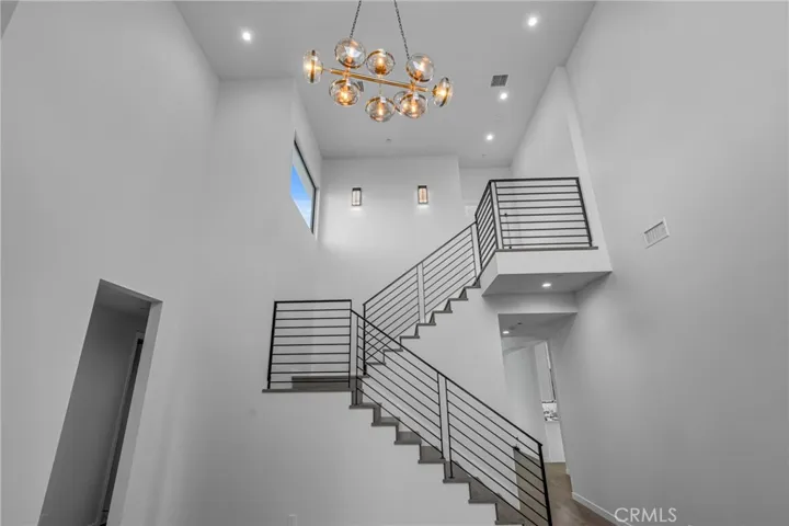 Step into luxury living with this stunning 2024-built modern residence where thoughtful design meets exceptional functionality. This 3-bedroom, 5-bathroom home features soaring 20-foot ceilings in the grand living room, a retractable chandelier, and a built-in 7-person home theatre. Outfitted with the latest smart home technology.The expansive kitchen and dining area are perfect for entertaining, featuring high-end luxury appliances, an oversized wine fridge, luxury stove with pot filler, double-wide farmhouse sink, dishwasher, oversized refrigerator, built-in microwave, and an 8-foot island with prep sink. Upstairs, the private primary suite offers a true retreat with a dedicated office, dual walk-in closets, a wet bar, peek-a-boo views, and a balcony overlooking the backyard. The spa-like primary bath includes dual vanities, a large walk-in shower with built-in bench, and premium finishes throughout. Sitting on just under 17,000 usable lot, this property offers endless possibilities — perfect for a pool/spa, ADU, sports court, or custom outdoor living space. A rare opportunity to own a fully upgraded modern home with space to expand and create.
