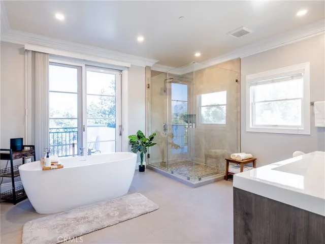 Situated in Arcadia’s desirable Mayflower Village, this elegant Mediterranean-style home sits behind its own automated front gate, offering both privacy and curb appeal. The layout features 6 en-suite bedrooms and a powder room, with two suites on the main level—one ideal for guests or extended family, and the other perfectly suited for use as a home office or study.
