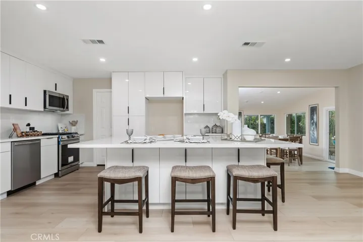 NEW PRICE!!This Anaheim SINGLE STORY three bedroom , two bathroom home has been thoughtfully renovated, including new flooring, paint, fixtures, major appliances, lighting, and room decor. As you enter the home, you are invited into the living room space that exudes style. The open floor plan adds warmth and charm to the space. New windows add natural light and energy efficiency, while insulation throughout ensures optimal comfort year-round. The stylish decor creates a cohesive and elevated atmosphere. The kitchen has been transformed with new custom designer contemperary finishes, new cabinetry, and sleek appliances, perfect for cooking and entertaining. Each bathroom features custom new glass shower doors, hardware, mirrors with integrated lighting, sink and toilets. The bedrooms have been upgraded with fresh paint, and new flooring, offering a peaceful and stylish retreat. The living room exudes an open feel with custom big windows and new flooring that adds warmth and charm to the space, making it perfect for both relaxing and entertaining. The garage is upgraded with epoxy flooring. For Peace of mind this home offers new plumbing, new sewer line, and newer electrical system. the backyard provides a serene space for private enjoyment. This detached home offers the ultimate in comfort, style, and modern living. Welcome home!