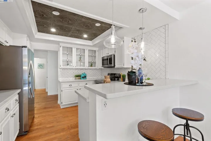 Welcome to 1585 Poppybank Court, a beautifully updated 4-bedroom, 2.5-bath duet tucked in a quiet court in one of Pleasanton’s most desirable neighborhoods. This move-in ready home offers comfort, style, and a prime location near top-rated schools, downtown, shopping, and major commuter routes. The recently remodeled kitchen features quartz countertops, upgraded cabinetry, new stainless-steel appliances, and a breakfast bar. The adjacent dining area opens to the backyard—ideal for indoor-outdoor living. Upstairs, the spacious primary suite boasts vaulted ceilings, a custom walk-in closet, and a renovated en-suite bath with soaking tub and stall shower. Three additional bedrooms provide flexibility for guests, family, or a home office. The updated guest bath includes smart mirrors and modern finishes, plus a main-level powder room for added convenience. Additional highlights: hardwood floors downstairs, new carpet upstairs, dual-pane windows, new blinds, copper plumbing, central A/C, laundry room, and a two-car garage. Enjoy the low-maintenance backyard with a new fence—perfect for relaxing or entertaining in a peaceful neighborhood.