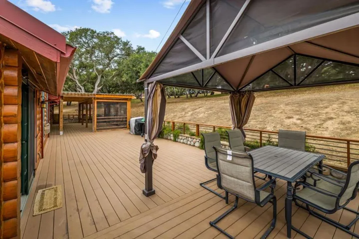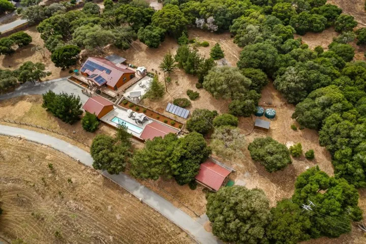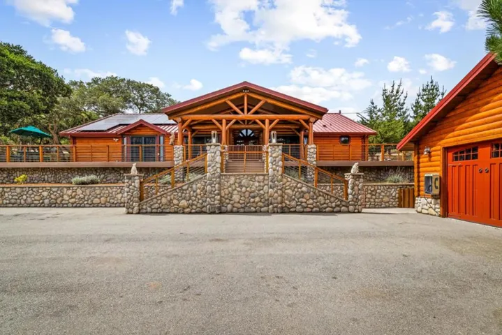 Tahoe-Inspired Ranch Retreat in North Monterey County Where Luxury Meets Privacy. Nestled on 4.3 private, gated acres at the crossroads of Highway 101 and Highway 156 providing effortless access to Monterey, Carmel, Pebble Beach, and the stunning California coastline. This 3,500 sqft custom masterpiece blends rustic elegance with modern amenities. The main residence features two expansive primary suites, each designed for comfort and privacy, with rich hickory wood floors and cabinets, handmade copper sinks, and artisan stone fireplaces that create a warm and timeless ambiance. No detail has been overlooked in this beautifully curated home. An additional detached casita offers flexibility for guests, multigenerational living, or a private studio space. Enjoy the outdoors year-round with your solar-heated pool and house, and multiple patios ideal for entertaining. The home is equipped with a standing-seam metal roof, owned solar system, and its own backup generator, offering both sustainability and peace of mind. A private well ensures abundant water, and RV hookups for two vehicles make hosting or traveling easy.