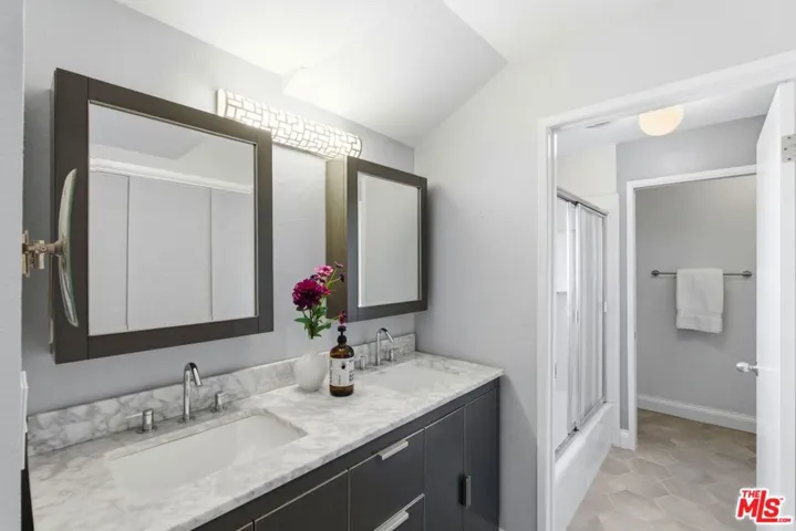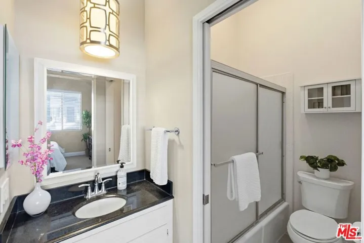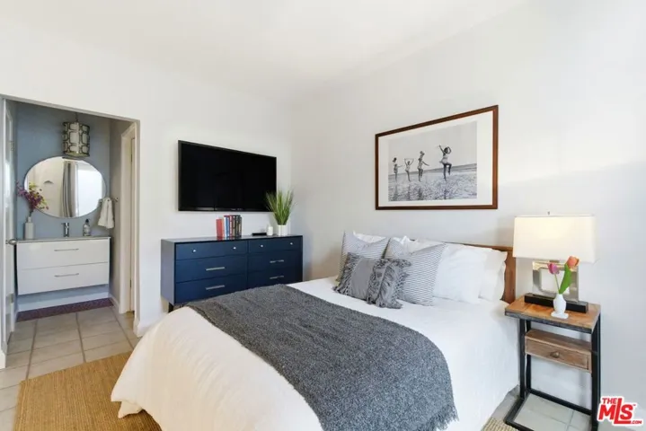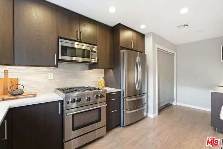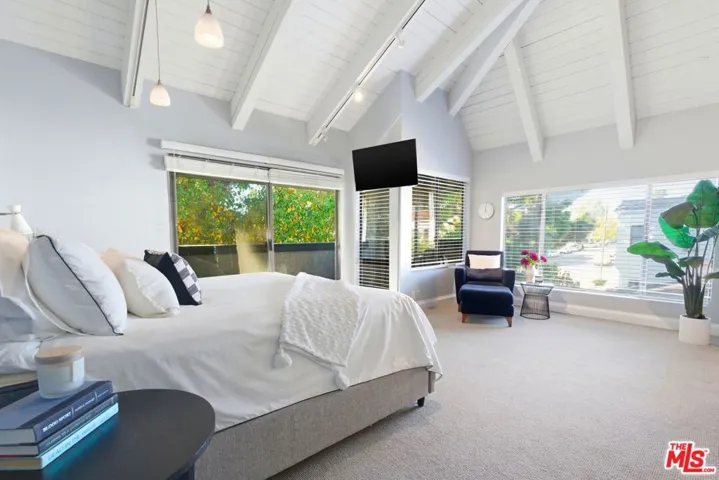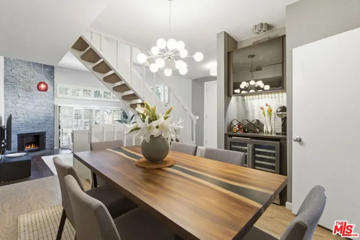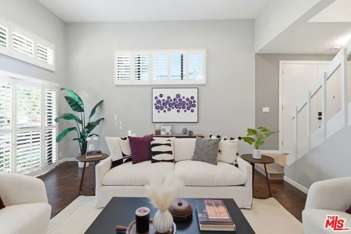 Enjoy refined coastal living in this beautifully remodeled front-facing townhome in the heart of Santa Monica, featuring 3 en-suite bedrooms and 3.5 bathrooms across 1,850 sqft of living space. The light-filled living room boasts soaring ceilings, a stone-accented gas fireplace, and opens to a private front patio for effortless indoor-outdoor living. The chef’s kitchen includes a Blue Star range, Miele dishwasher, quartz countertops, and custom cabinetry, with a wine fridge in the adjacent dining room. A powder room and side-by-side washer/dryer are located conveniently nearby, adding to the ease of modern living. Upstairs, the primary suite offers vaulted ceilings, two closets (one walk-in), and a wraparound balcony. A second upstairs bedroom and a downstairs guest suite each feature high ceilings, en suite bathrooms, and generous storage. The lower-level bedroom opens to a secluded patio, ideal for guests or use as a home office. Additional upgrades and features include a new Bosch heat pump HVAC, new electrical wiring, and a private 2-car garage showroom with built-in storage and checkered-flag style flooring. With all of the best dining, entertainment, and shopping that Santa Monica has to offer, along with close proximity to the ocean, this property is a true gem.