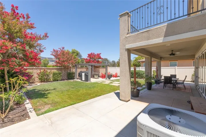 The backyard is thoughtfully landscaped with multiple areas to entertain, including a 12×12 gazebo and covered California Room. No rear neighbors and plenty of space for a future pool. Residents enjoy resort-style amenities: clubhouse, 24/7 fitness center, pool, spa, tennis and basketball courts, private walking trails, and a large central park. Low tax rate and located within the award-winning Temecula school district.