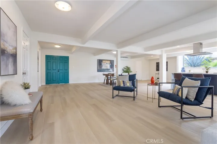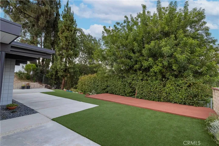 Dreaming of a totally updated mid-century modern home in Granada Hills with iconic architecture and open-concept living? This non-contributory Eichler home was originally designed by renowned architect A. Quincy Jones and has been completely remodeled with modern finishes while preserving its iconic charm. Featuring 4 bedrooms and 2 bathrooms, this light-filled home offers a massive great room with an ultra-open layout, brand-new kitchen with waterfall-edge quartz countertops, stainless steel appliances, subway tile backsplash, new cabinetry, an eat-in area, formal dining space, and a large island with room for stools. Enjoy multiple sitting areas, a cozy living room fireplace, new flooring throughout, and tons of recessed lighting. The primary suite includes a white wood ceiling, walk-in closet, and attached updated bathroom, while the three additional bedrooms share a beautifully remodeled hallway bath. There’s also an inside laundry area and an open, airy design with plenty of windows. Step outside to enjoy the low-maintenance backyard with artificial grass, a spacious deck, and multiple areas perfect for relaxing or entertaining outdoors. Located north of Rinaldi in Granada Hills, this mid-century modern home sits within the Balboa Highlands Historic Preservation Overlay Zone. Whether you’re a fan of mid-century design, Eichler architecture, or simply moving to Granada Hills for its parks, hiking trails, top schools, or easy freeway access, this modernized Eichler-inspired home is not to be missed.