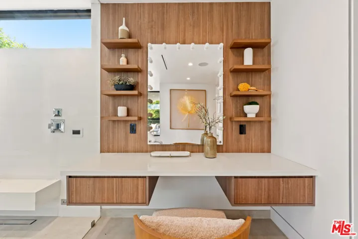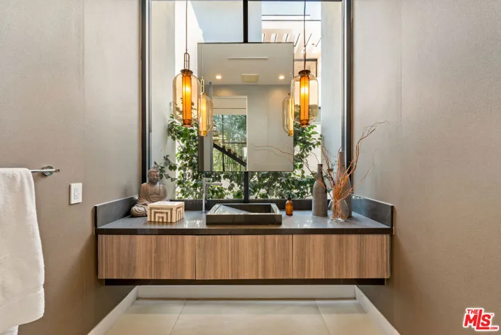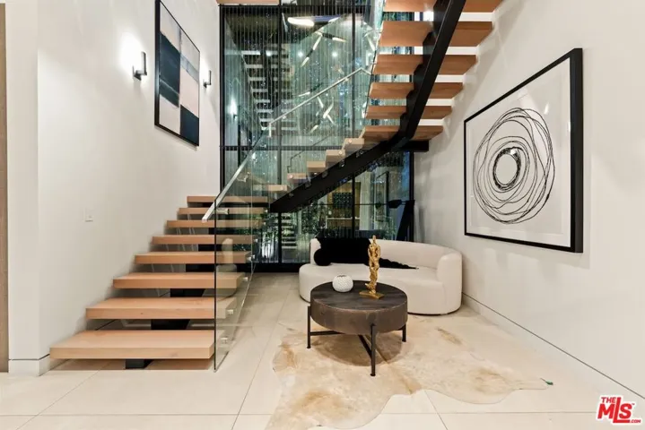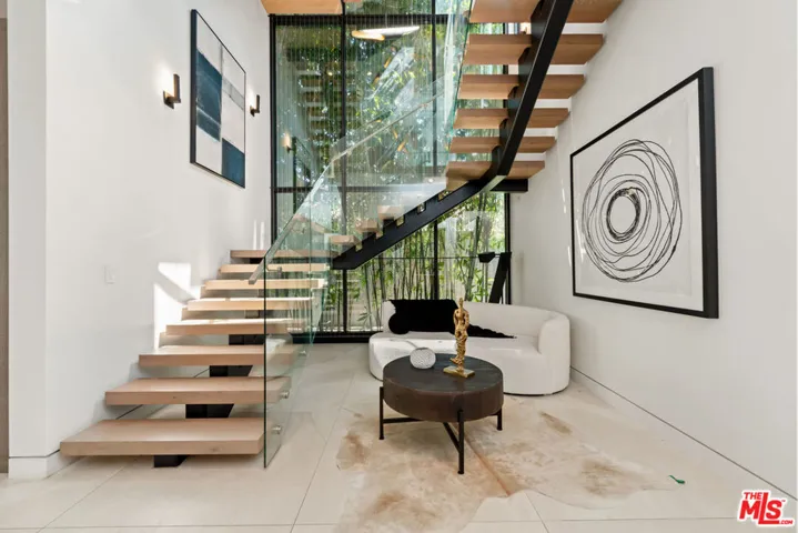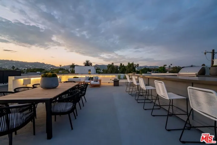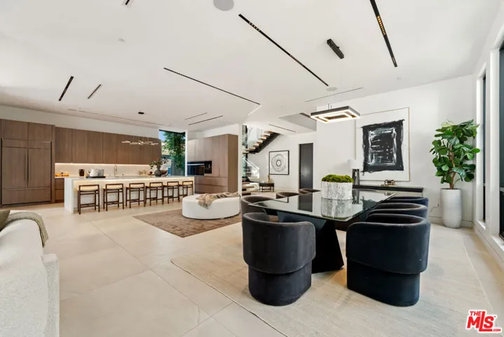 Welcome to Zen: A serene statement of modern luxury where elevated design and mindful living intersect in the heart of Melrose. Set behind gates in the vibrant heart of the Melrose District, this striking architectural residence presents a private sanctuary of modern sophistication designed to elevate everyday living with resort-style amenities, serene interiors, and cutting-edge innovation. A dramatic entry opens to soaring ceilings, expansive walls of glass, and gallery-like proportions bathed in natural light. Clean lines and natural textures evoke a sense of calm throughout, while thoughtful design details including a dramatic floating staircase, architectural lighting, and organic materials set the tone for elevated, yet approachable luxury and contemporary elegance. Zen features 5-bedrooms and 6-bathrooms spanning across 5,300 sq. ft. of meticulously designed living space and offering an unmatched combination of high design, functionality, and tranquility in a modern contemporary style. An entertainer’s dream, the expansive open-concept living and dining areas are anchored by a dramatic fireplace and flow effortlessly into a gourmet chef’s kitchen outfitted with top of the line Wolf appliances, custom cabinetry, a spacious center island, and sleek stone countertops. Retractable glass doors disappear to reveal a seamless indoor-outdoor experience, leading to your private backyard oasis. With wellness and lifestyle at the forefront, Zen comes with a private gym, perfect for morning workouts or mindful movement and a set of resort-level amenities including a sparkling pool and spa for sun-soaked afternoons, a cold plunge and sauna for restoration and renewal, and multiple lounge areas surrounded by lush, thoughtfully landscaped greenery providing your own modern retreat in the middle of the city. The primary suite is a masterclass in luxury and serenity, featuring a spacious layout, private balcony, spa-like bath, a free standing soaking tub and walk-in rain shower, and a spacious boutique-style closet. Each of the additional en-suite bedrooms offers ample space, designer finishes, and the same sense of understated luxury as seen throughout the property. At the crown of the estate is an expansive rooftop deck featuring panoramic, unobstructed 360 degree views that stretch from Downtown Los Angeles to the iconic Hollywood Hills and includes a built in rooftop grill and bar and a fire pit presenting an extraordinary setting for sunset cocktails or starlit dinners. For those who appreciate intelligent living, the home is fully integrated with a state-of-the-art Control4 smart home system, allowing you to manage lighting, climate, sound, and security with ease from anywhere. Enjoy rich audio throughout with built-in speakers in every major room, perfect for ambient music, entertaining, or immersive media experiences. The property is also equipped with a comprehensive security system, including strategically placed cameras and remote access, offering both peace of mind and privacy. Located in the vibrant Melrose District, you’re just moments from some of Los Angeles’ most acclaimed shopping, dining, and entertainment yet the home’s privacy and peaceful atmosphere make it feel like a world of its own. This is not just a residence, it’s a lifestyle. Luxurious, soulful, and effortlessly cool, Zen is the type of residence that redefines what it means to live well in Los Angeles.
