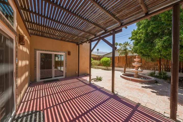 Welcome to the beautiful La Quinta Cove, where this fantastic location offers the best of both worlds. You are ideally tucked away in the cove, while also located just minutes away from restaurants, shopping, entertainment, and more! Hiking trails are within short walking distance. This Santa Fe style home offers 3 bedrooms, 2 full baths, and an enclosed front courtyard. Master bathroom is equipped with dual vanity sinks and tiled shower. There is no carpet in this home, the bedrooms were recentley upgraded to wood flooring. Beautiful French doors in the great room offer tons of natural light and provide easy access to the private courtyard with amazing mountain views. There is also a patio rooftop that offers a stunning view. The fireplace in the Great Room is perfect for those cold winter nights. You can save on utility costs with high efficiency windows! This is a picturesque desert home with Spanish tile floors and colorful tile accents in kitchen and bathrooms. The laundry room is equipped with a washer and dryer. Amazing location that offers ideal desert living!