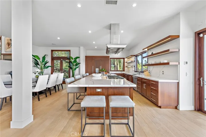 Nestled on a coveted corner lot, this exceptional estate sits beside Cliff Drive Park on one side and just steps away from a lush greenbelt on the other, creating a unique blend of privacy, beauty, and convenience. With sweeping views of the ocean, harbor, and Catalina Island, this property is a true masterpiece of coastal living. Spanning over 5,000 square feet, this five-bedroom (optional sixth) home, with five-and-a-half baths, offers a seamless fusion of luxury, design, and natural surroundings. The entry is framed by a serene walkway with water features leading to double doors. Inside, the open foyer with soaring ceilings, a central fireplace, and expansive Marvin windows create a bright, welcoming atmosphere. Wood and stone flooring and custom millwork add a refined touch, while sunken common areas enhance the sense of space. On the main level, you’ll find two spacious en suite bedrooms, a formal living room, a wine room, and an open-concept dining area that flows into a gourmet kitchen and family room. The kitchen features Thermador appliances, a 13-foot “Bistro”-style island, quartz countertops, and custom cabinetry. Glass doors open to a covered terrace, offering sweeping harbor views. The private wing is home to the primary suite, which includes a fireplace, private balcony, a large walk-in closet, and a spa-like bath. On the same level, a media room, library, office, two additional en suite bedrooms with built-in study areas, and an upstairs family room complete the living spaces. Outside, the backyard is an entertainer’s dream, featuring a saltwater pool, built-in BBQ, and plenty of space for al fresco dining, all framed by breathtaking coastal views. Other highlights include a Vantage lighting system, a laundry room, and a sweeping driveway leading to a three-car garage, all set amidst beautifully manicured landscaping. Located just minutes from shopping, dining, and the Balboa Peninsula, this home offers the perfect combination of privacy, luxury, and convenience.
