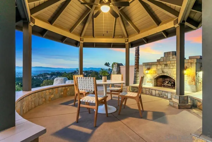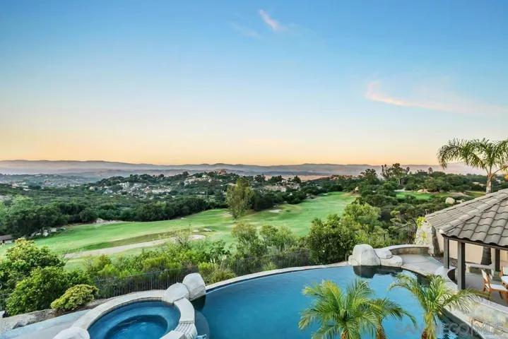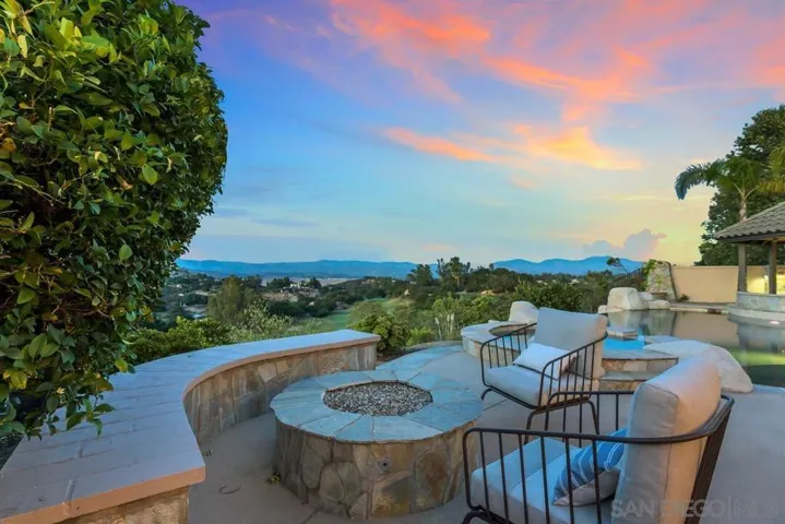 PRICE IMPROVEMENT!!! Enjoy majestic Mt Woodson & Ramona Valley views from this award-winning Mt Woodson golf course gated community. Located on the west side of Ramona, approximately two miles from Poway. Beautiful 4-bedroom plus optional bedroom, this home is perched on a private and serene elevated lot. This exceptional property showcases sweeping panoramic views and a resort-inspired backyard designed for ultimate outdoor living. Enjoy a solar-heated Pebble Tech vanishing edge pool, Baja shelf and spa with a brand-new interior and waterfall, granite BBQ island with seating for eight, built-in fridge, tile-roofed gazebo with fireplace, and a separate fire pit, perfect for relaxing or entertaining. Inside, the open-concept great room features vaulted ceilings, oversized windows, and an abundance of natural light. A peaceful entry courtyard with a water feature sets the tone for the home’s tranquil ambiance. Recent upgrades include a new tile roof (2020), two Lennox HVAC systems (2020 & 2024), newer water heater, freshly painted exterior and trim (2025), new interior paint and carpet, and updated outlets and switches. Additional highlights include a 3-car garage, 5-foot privacy walls, and a floor plan that blends comfort and elegance. Meticulously maintained, this is one of Mt. Woodson’s most impressive homes, offering privacy, luxury, and unforgettable views.