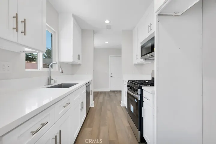 1234 W 89th St: 3 Bed / 2 Bath | 910 sq ft | Detached second unit with white shaker cabinets, quartz countertops, 3-ton HVAC, and in-unit washer/dryer hookups.
