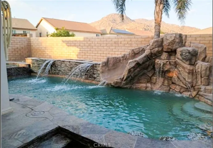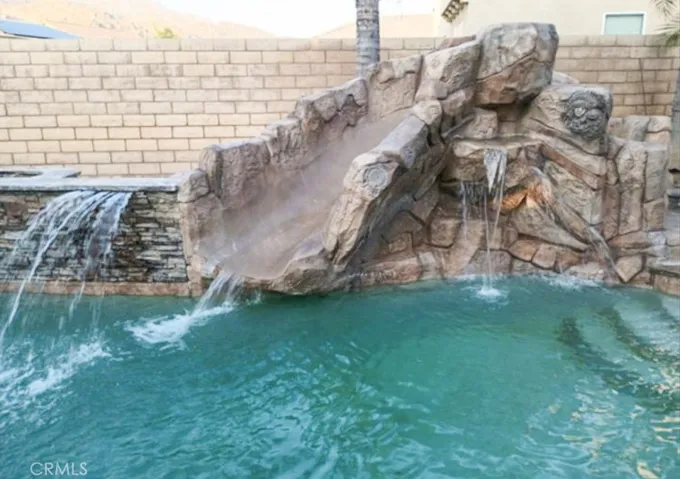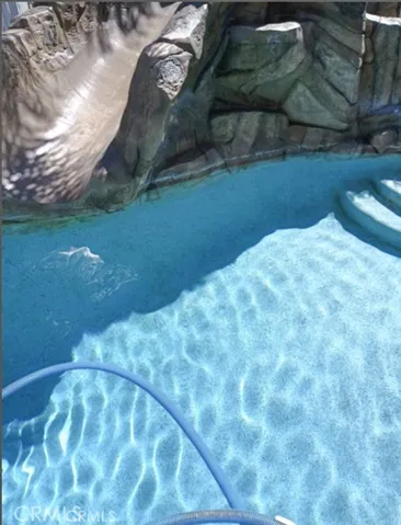 Downstairs, two private-entry bedrooms have been reconditioned into a junior studio with a full bathroom and private patio access. This area is currently rented for $1,500/month, providing valuable rental income or multigenerational living options. One of the original three garages has also been converted into a cool and fresh work-from-home space—perfect for remote professionals or creative use. All modifications can be easily reversed to return to the original floor plan if desired. Outdoor living shines here with a covered patio, ceiling fans, lush palm trees, and a rock formation with a slide into the pool and Jacuzzi—your very own backyard oasis! Additional features include: Curtain shutters throughout, Solar panels under contract to purchase (buyer to assume loan, approx. $265/month, with long-term energy savings), Ceiling fans, Fireplace, pantry, and ample kitchen cabinetry