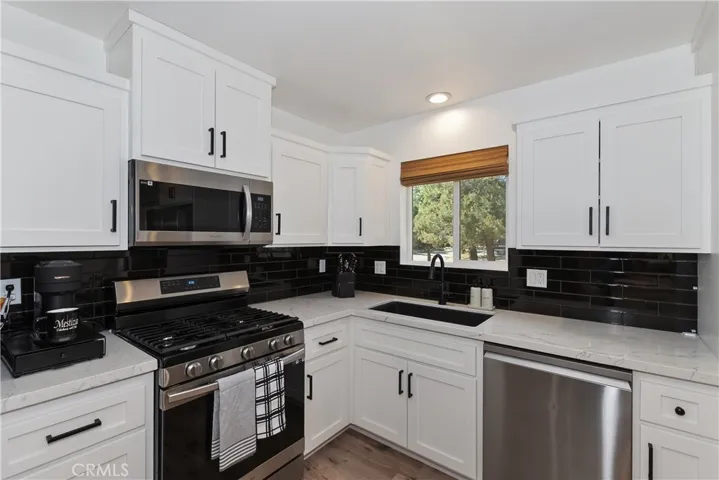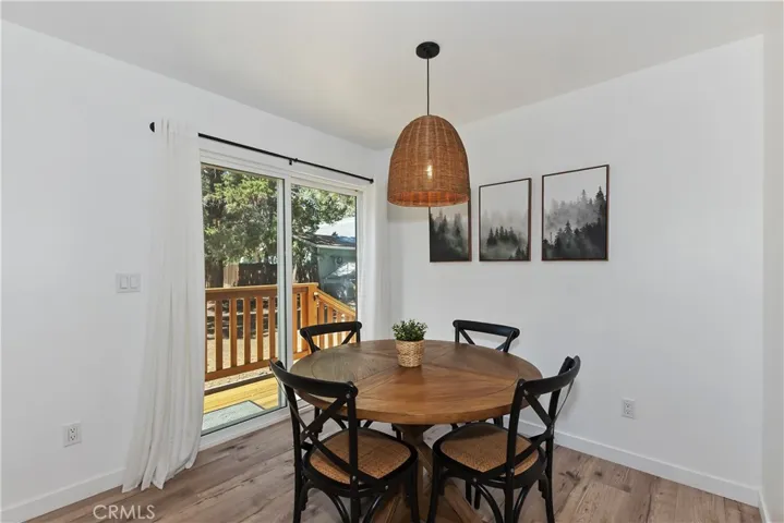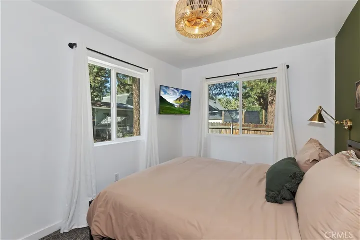 Built in 2022, this beautiful 2-bedroom, 2-bathroom home blends contemporary design with the peaceful charm of Big Bear’s Erwin Lake neighborhood. Step inside this newly built home and you’ll immediately appreciate the open-concept living area, showcasing vaulted ceilings, custom flooring, and a Wood burning high efficiency fireplace to keep you cozy and warm on those snowy evenings. The kitchen is a modern delight with stainless steel appliances, quartz countertops, soft-close cabinetry, and island with barstool seating ideal for entertaining. The primary suite offers a blissful escape with its en-suite bath and large closet. A second bedroom and full guest bathroom provide stylish and flexible space for guests or home office. Outdoors, enjoy your spacious yard with room for relaxation, pets or play and plenty of space for future additions like a spa or fire pit. The 1 car detached garage offers extra storage and ease of parking. Located just minutes from hiking trails, Big Bear Lake, and local attractions yet tucked away from the hustle this home is a perfect mix of modern design, comfort and natural beauty.