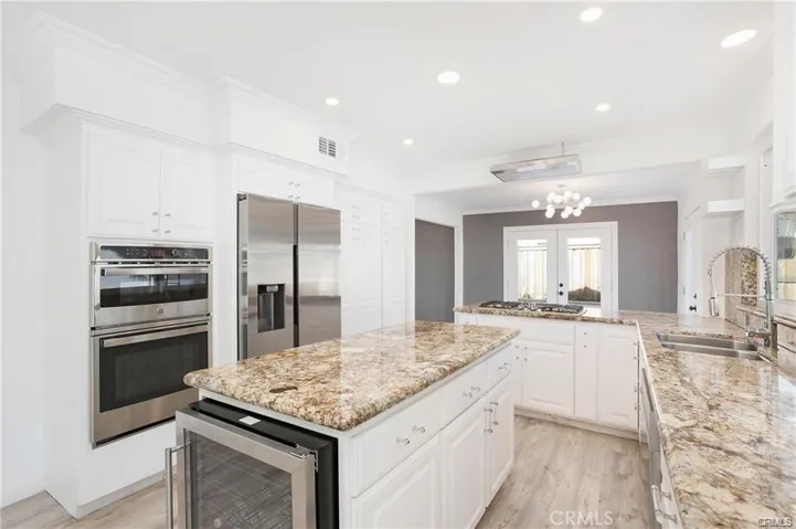 TURNKEY ! COMPLETELY REMODELED NORTH TUSTIN HOME ! DOWNSTAIRS PRIMARY BEDROOM ! SINGLE LOADED STREET ! NO NEIGHBOR IN FRONT ! Welcome Home ! 13772 Sanderstead is located in the highly sought-after North Tustin community & sits on a single-loaded street. This beautifully remodeled 4-bedroom, 2-bathroom residence exudes style & charm. Featuring a modern, open-concept floor plan, the home is enhanced with designer touches throughout, new flooring, fresh paint, and custom details — offering both elegance & charm in every detail. As you enter, you’re greeted by a formal entryway that seamlessly guides you into the spacious living area, where a cozy fireplace serves as the focal point. The kitchen has been beautifully remodeled & features elegant stone countertops, brand-new Samsung stainless-steel appliances, large kitchen island w/ wine refrigerator, & custom cabinetry. It opens to the dining & great rooms, creating the perfect space for hosting & entertaining.The dining room showcases a designer light fixture & offers the ultimate indoor-outdoor experience. French doors open to the entertainer’s backyard, seamlessly blending the two spaces for an ideal setting to enjoy both inside & outside living, The backyard has been meticulously designed w/ low-maintenance landscaping & feat. an outdoor fire pit providing the perfect spot for relaxation, offering complete privacy.The downstairs primary bedroom is generously sized, feat. new, extra large mirrored closet, recessed lighting, & direct access to the backyard. Its spacious design offers both comfort & convenience, creating a peaceful retreat w/ easy outdoor access.The downstairs primary bath is exquisite, feat. a luxurious steam room & shower combo. It boasts a new vanity with dual sinks & custom tile flooring & backsplash, creating a spa-like atmosphere with elegant, modern finishes.The second through forth bedrooms are impressively spacious, ea. feat. large mirrored closets, beamed ceilings, & an abundance of natural light. The secondary bath is stunning, showcasing a new Whirlpool bathtub & shower, along with a custom tile backsplash & vanity. The 2-car garage is notably spacious, providing ample room for extra storage. Additionally, the bonus room / den adds valuable square footage.This home is conveniently located to high-end shopping, popular restaurants, close to Beach Cities, and located w/ an award-winning school district !