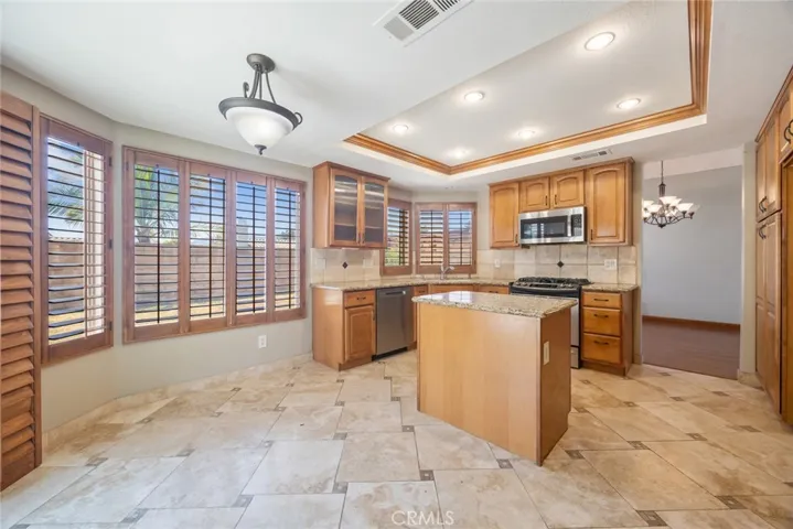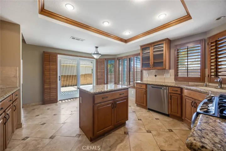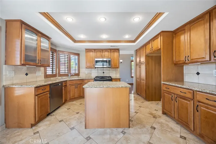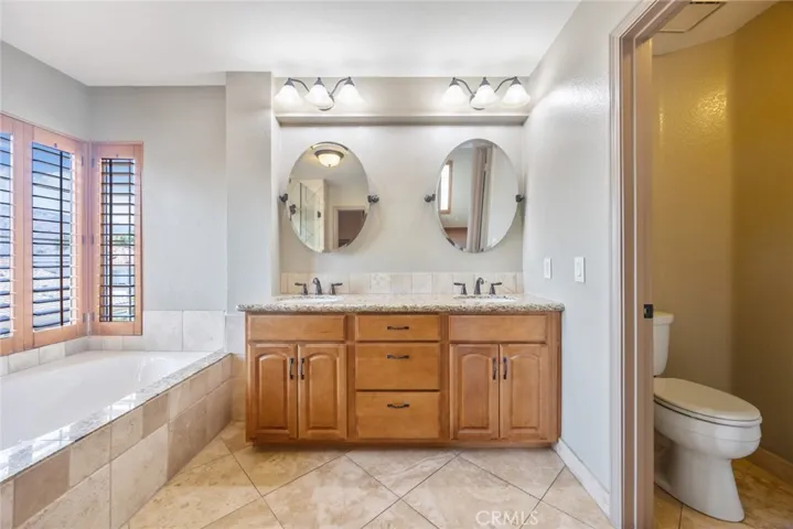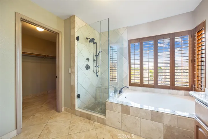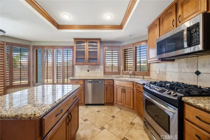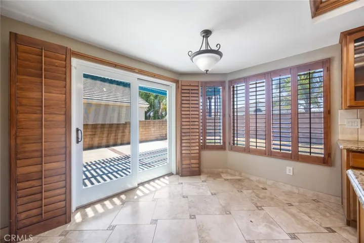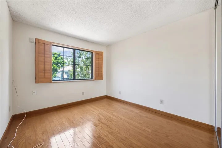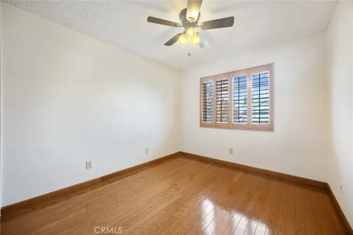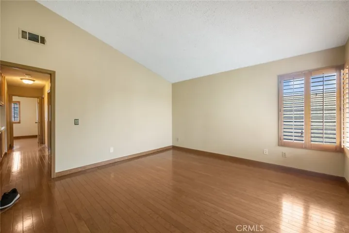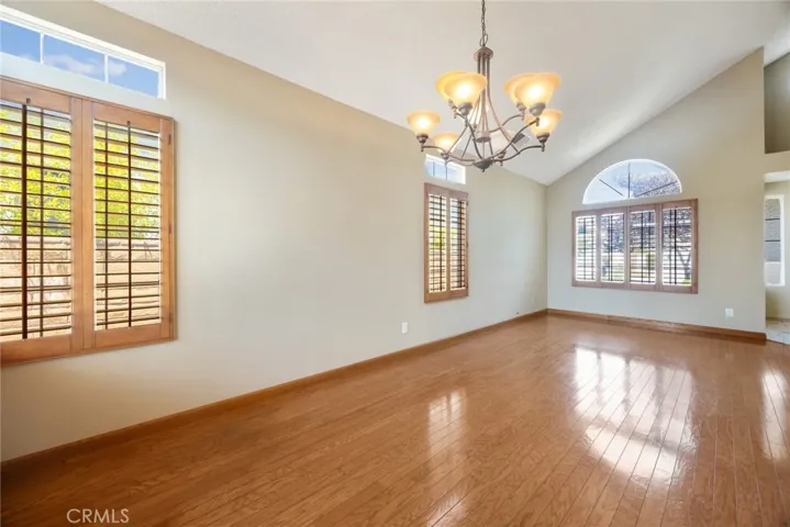 Desirable North la Verne location for this wonderful 4 bedroom 2.5 bathroom two story home. Entry, living room and dining room features vaulted ceilings along with wood flooring. The family room has a fireplace with travertine stone and wood flooring. The kitchen has updated cabinetry with granite counter tops, natural stone backsplash, stainless steel appliances, recessed lighting and small island. There is also a half bathroom and laundry room on the first level. Shutters have been installed on most of the homes windows. The upstairs master bedroom also has a vaulted ceiling , wood shutters and wood flooring. The master bathroom features a separate soaking tub and shower. The cabinet has dual sinks with ample space for storage. There is also a large walk in closet. The remain upstairs bedrooms also feature wood flooring. The remodeled hallway bathroom features a shower with newer cabinetry and plumbing fixtures. There is also an attached three car garage with room for storage. The backyard has block perimeter walls and a patio.