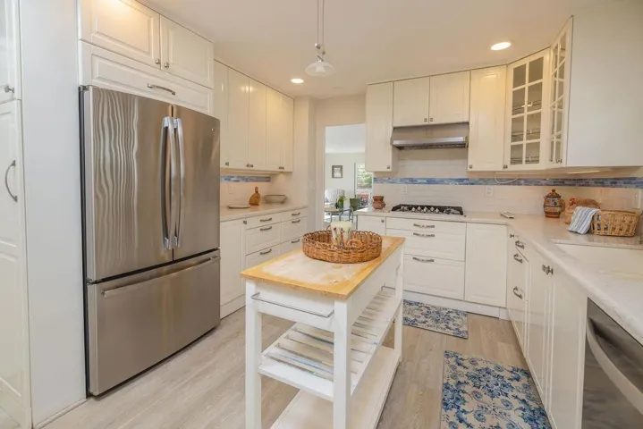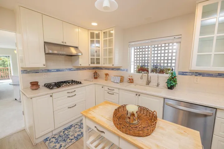 Welcome to 1207 David Avenue — a home that offers warmth, functionality, and inviting spaces throughout. This spacious residence has four bedrooms, with three located on the main level along with a full bathroom featuring dual vanity sinks. Upstairs, you’ll find an expansive primary suite complete with direct access to the backyard deck and a generous wrap-around closet — ideal for those in need of ample storage or a dedicated dressing area. Also upstairs, just past the bay window, is a light-filled living room with a stone fireplace and access to a large front deck perfect for morning coffee or sunset lounging. The remodeled kitchen boasts abundant stone countertops, shaker-style cabinets with glass fronts, a sleek stainless steel range hood, gas cooktop, and a built-in dining nook with sliding doors that open to a private back deck. Recent upgrades include fresh interior paint, new flooring, and professionally landscaped front and rear yards. The oversized two-car garage offers laundry, a workshop sink, microwave, refrigerator, and separate freezer — ideal for projects, storage, or entertaining overflow. With generous indoor-outdoor living, thoughtful improvements, and a desirable location, 1207 David Avenue is ready to welcome you home.