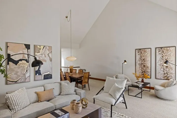 Discover the serene charm of High Meadows with this stunning townhome nestled above the picturesque Carmel-by-the-Sea. Boasting three bedrooms, two bathrooms, and over 1,800 square feet of sunlit living space, this forested retreat is a true gem. The main level invites you in with a spacious primary bedroom opening to a private patio, a bright living area with soaring vaulted ceilings, an expansive deck, and a cozy fireplace perfect for unwinding. The kitchen featuring high ceilings, a large skylight, and an outdoor dining area for al fresco meals. Downstairs, you will find two additional bedrooms, a full bath, a convenient laundry room, and another deck to soak in the tranquil views. Additional perks include a private garage and generous storage space. Situated within the coveted Carmel Unified School District and just moments away from the best of the Monterey Peninsula, this home is a must-see. Experience the allure of High Meadows living!