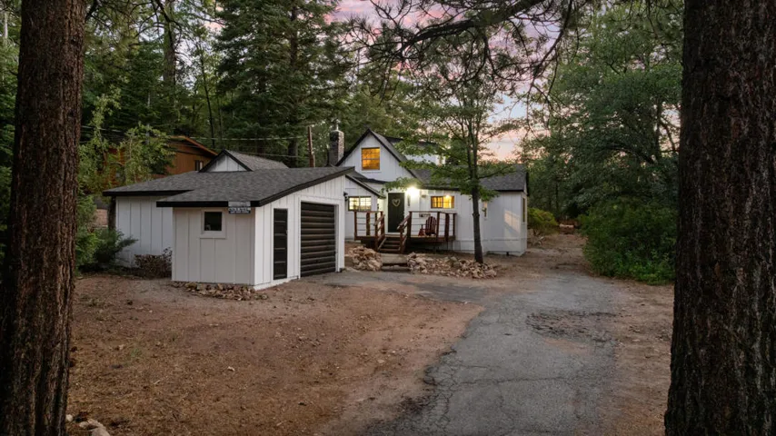 Step into a home that tells a story stretching back nearly a century–an enchanting and authentic Big Bear cabin that blends vintage charm with thoughtful updates. Tucked away on a huge, well-treed lot, this magical retreat offers a quiet, private setting just moments from the best of Big Bear: only 4 blocks to the lake, 5 blocks to the Village, and a mere 2 minutes to the ski slopes. National Forest access and the popular Town Trail are right around the corner. Inside, you’ll find real wood floors, vaulted ceilings, and the warm glow of knotty pine T&G throughout. A beautiful rock fireplace anchors the living space, perfect for cozy winter evenings. The updated kitchen features new cabinets and stylish finishes, while the bathroom has been refreshed with a new sink and copper piping. A tankless water heater adds modern convenience, and a newer concrete patio off the back invites you to relax under the pines in your secluded backyard. With a bedroom and full bath on the main level plus a spacious loft-style suite upstairs, this cabin is ideal as a full-time home, weekend getaway, or vacation rental with excellent income potential. Fresh brand-new siding gives the home a crisp look while preserving its original spirit. This is more than a cabin–it’s a piece of Big Bear history, lovingly refreshed for the next chapter. Whether you’re hitting the slopes, hiking out your front door, or strolling to dinner in the Village, the location couldn’t be more perfect. Don’t miss this rare opportunity to own a true mountain gem.