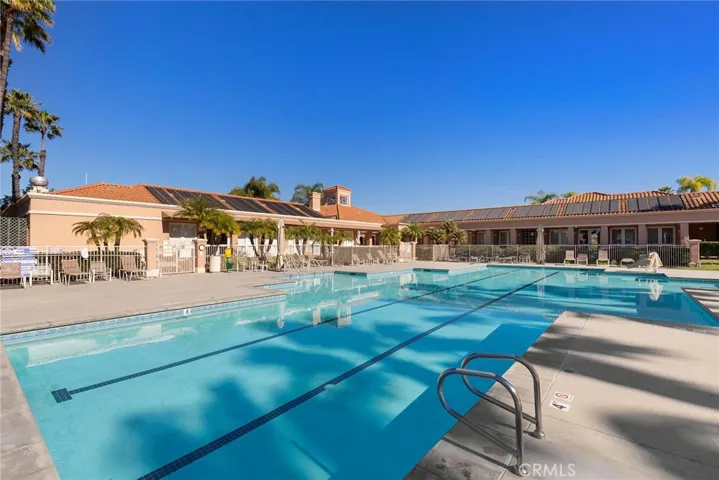 Welcome home. In the heart of the privately gated 55+ community of Palmia. Located near the end of a cul de sac. Enter the privately gated courtyard between your two garages. This spacious open concept floorplan has approximately 1278 sqft of living space with 9 ft. ceilings and extensive use of windows for lots of natural light. Large eat-in family room with neutral carpet, media niche and cozy fireplace. Large kitchen with breakfast nook, large counter, cabinet space and ceiling fan. Large Primary suite with ceiling fan and sliding glass door. Primary bathroom with dual sinks, plenty of storage cabinets, convenient walk-in shower and walk-in closet. Spacious secondary bedroom with ceiling fan is perfect for guests or home office needs. Sliding glass doors from family room or primary bedroom leads to private back patio with patio cover, privacy wall and lush landscaping. Palmia is a 24 hour privately gate 55+ community for the active senior. Enjoy resort style community clubhouse and amenities. Pool, spa, tennis, pickle ball, 18-hole natural grass putting green, clubhouse with meeting rooms and community activities. Lake Mission Viejo access. HOA fees include cable and internet services.