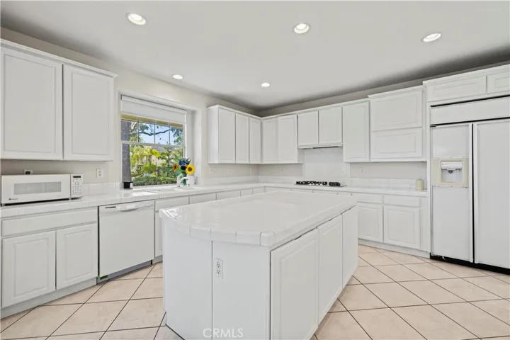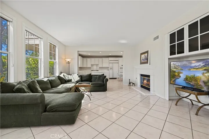 The kitchen is bright and spacious with a center island, loads of counter space, a sunny breakfast nook, and a walk-in pantry — all with breathtaking lake views. The kitchen also opens into a expansive family room with a fireplace and big windows that let the scenery shine.