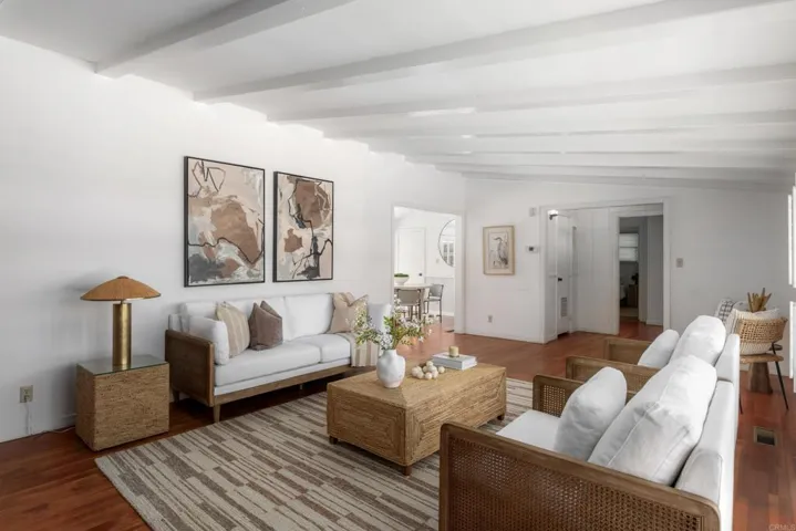 This prime opportunity offers single-level living with horizon ocean views from the front & rear yards and is just a few minutes from the Village, beaches and top-rated schools. This vintage home includes charming features like open beamed ceilings, brick fireplace and wood board-and-batten siding, and is undersized for the generous, mostly flat 0.3 acre lot, offering incredible potential for personalizing or complete reimagining – including the option to add a second story to fully capture the ocean views. A crescent-shaped driveway and front facing garage provide ample parking and a buffer to the street exposure. With a little vision & creativity, this can be transformed to its full potential and will be an opportunity missed if not acted on urgently!
