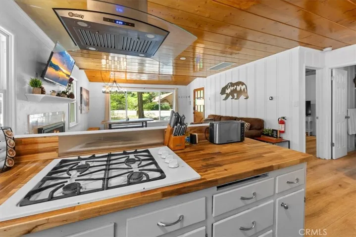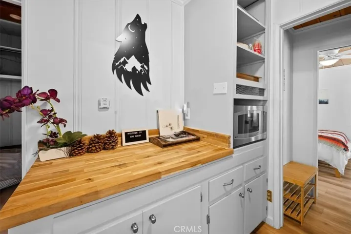 Step inside the main home and be greeted by a bright and airy living room featuring a large picture window with neighborhood views and a cozy fireplace for those chilly mountain evenings. The open-concept layout flows nicely with a built-in buffet and a beautifully updated kitchen with butcher block countertops open cabinets and plenty of storage. Easy, flat parking on the circular driveway in front of the house.