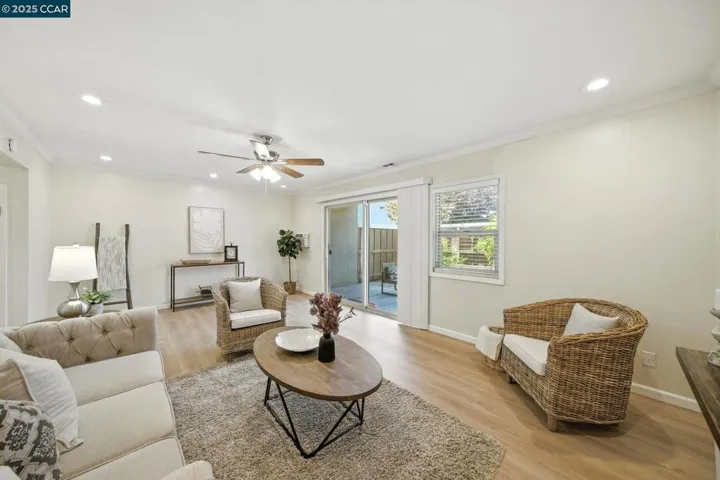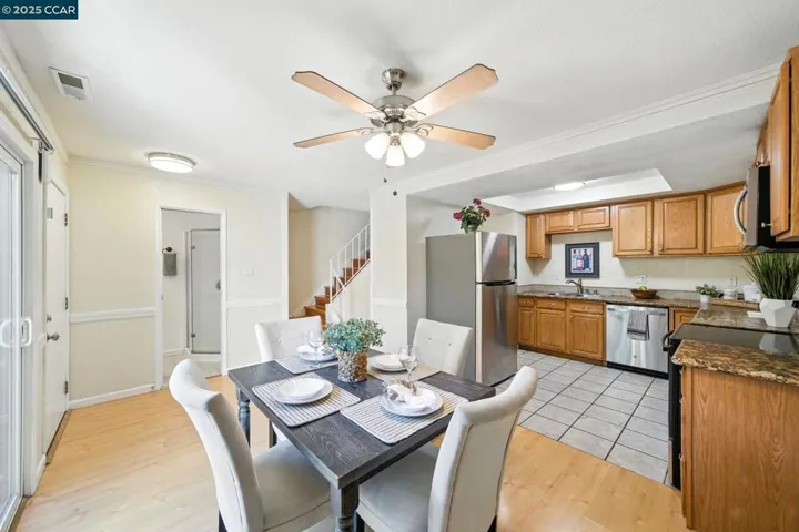 Stylish End-Unit Townhome in Prime Colony Park Location! This spacious 2-story home offers peace and privacy at the back of the complex with serene greenbelt views. Inside, enjoy a beautifully updated kitchen, rich wood flooring, dual-pane windows, recessed lighting, crown molding, and tasteful neutral tones throughout. Thoughtful features like ceiling fans, two private patios, and a primary suite with a private deck overlooking the pool and greenery make this home both comfortable and inviting. A rare end-unit opportunity in an excellent community — Don’t miss it!