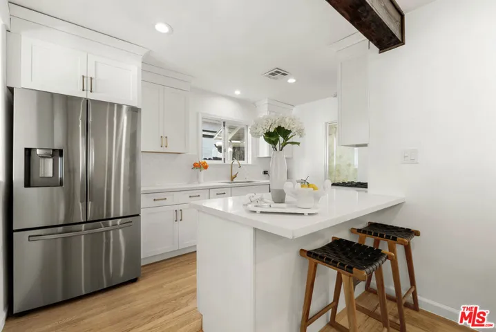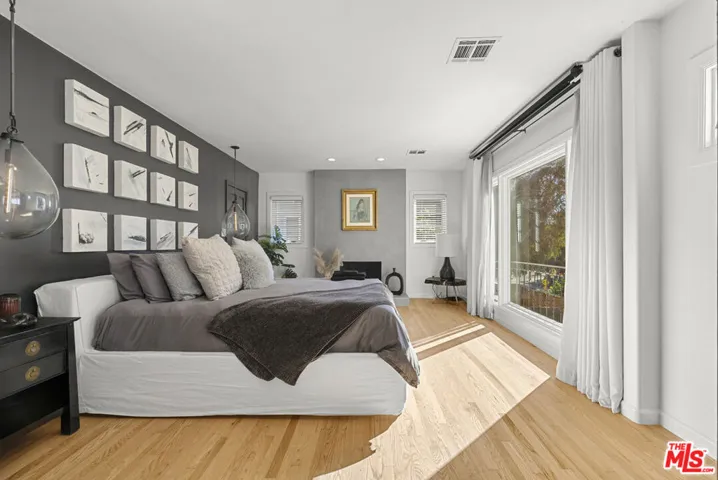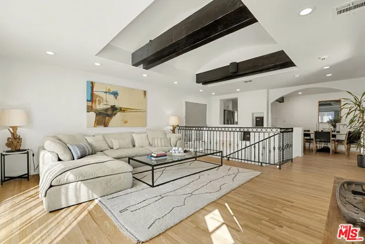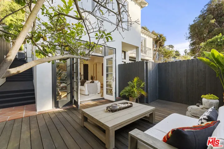 Nestled in the coveted Santa Monica Canyon, 410 Entrada Dr offers a serene private retreat moments from sandy beaches, hiking trails, and world-class dining. This light-filled home combines character and modern comforts, featuring vaulted ceilings, exposed beams, hardwood floors, and custom Spanish tile details. The main level includes a spacious living room with French doors leading to a lush front patio, a remodeled kitchen with high-end appliances, and an elegant primary suite with a fireplace, walk-in closet, and spa-inspired bath. Two additional bedrooms, one opening to the terraced backyard, provide flexible living options. The outdoor spaces include a private garden with dining and lounging areas, a hot tub, and a tranquil canyon view. Additional features include air conditioning, a secure two-car garage, and ample driveway parking. This is a rare opportunity to own a home in one of Los Angeles’ most sought-after neighborhoods.