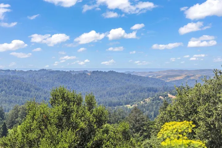 With panoramic views of the Pacific Ocean, Mindego Hill, and Skyline Ridge, this hilltop retreat on upper Alpine Road offers a tranquil front-row seat to some of the Bay Area’s most stunning scenery. Sunrises and sunsets light the ridges and ocean, while fog drifts through the valleys below. Designed by D.P. Finnigan, the home features clean lines, tall windows, hardwood floors, solid wood cabinetry, and seamless indoor-outdoor flow with broad patios. The open layout includes spacious living and family rooms, a large kitchen and dining area, and a generous primary suite all with striking views. Quality craftsmanship, attention to detail, and creative design make it perfect for relaxing or entertaining. Solar power, Tesla Powerwalls, a heat pump with gas furnace, generator, and defensible space offer comfort and security. A hot tub, pond, native landscaping, citrus trees, and orchard add charm. Enjoy nearby Russian Ridge, Portola Redwoods, and Sam McDonald Parks. San Gregorio Beach is just 25 minutes away; Page Mill/280 (35), Palo Alto (40), Saratoga (30).