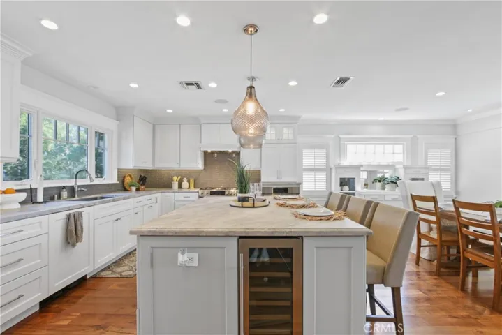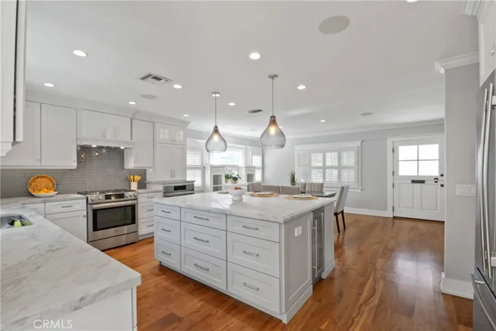 Welcome to 4427 Vista Street—an absolutely picture-perfect 3 bed, 2 bath home in the heart of Belmont Heights, just moments from 2nd Street’s restaurants, shopping, the beach, and all the charm Long Beach has to offer. Built in 1919 and thoughtfully renovated to meet today’s modern lifestyle, this 1,565 sq ft home effortlessly blends timeless character with contemporary upgrades. Step through the inviting Dutch door into a light-filled open kitchen featuring quartzite stone countertops, built-in appliances, and breakfast bar overlooking dining and living space.. The original built-in dining room cabinetry and a cleverly tucked-away Murphy bed nod to the home’s historic roots while adding unique functionality. The spacious primary suite is a true retreat with vaulted ceilings and a luxurious en-suite bath adorned with marble details and custom cabinetry offering plenty of storage. The attached 2-car garage is finished with epoxy flooring and includes an additional bonus room—perfect for a home office, or creative space. This home also features, recessed lighting, interior washer/dryer hookups, remodeled guest bathroom. Enjoy the ocean breeze in your beautifully paved quaint backyard, ideal for relaxing or entertaining under the stars on those cozy Long Beach nights. Don’t miss this rare opportunity to own a turnkey bungalow gem in one of the city’s most beloved neighborhoods.