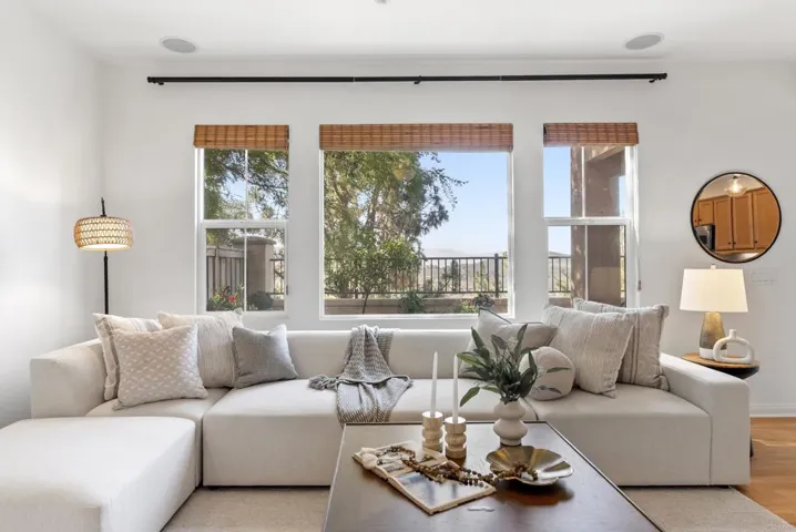 Highly popular end unit townhome overlooking the mountains & city lights in the WestRidge gated community of picturesque San Elijo Hills. This open-concept floor plan features 1,316 square feet of living space with 3 bedrooms, 2.5 bathrooms & a spacious backyard. Radiating with natural, light this newly carpeted & freshly painted property offers a large living room with gas fireplace, hardwood flooring, kitchen with stainless appliances, 2 car direct access garage & a generous primary bedroom with en-suite bathroom, walk in closet, soaking tub & private balcony for enjoying your morning coffee. The gated community of WestRidge offers access to the resort style pool, spa & serene water feature in the coveted development of San Elijo Hills that exudes small town charm. Steps away from top-rated San Elijo schools, parks, playgrounds, ball fields, dog park, shops, restaurants, grocery store & access to 18 miles of maintained trails, perfect for outdoor adventures.
