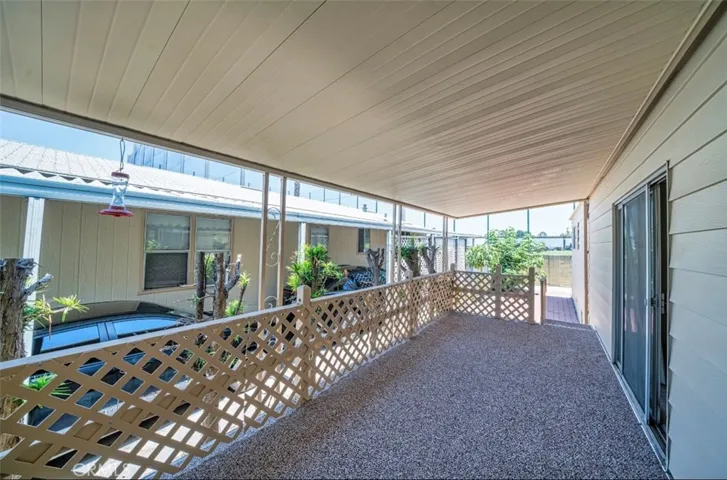 The long carport provides parking for up to 3 vehicles. Situated in Rowland Heights Mobile Estates, this home comes with one of the lowest space rents in the park, making it an affordable and desirable choice within the community.