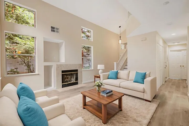 Welcome to this charming home located in the vibrant city of San Jose. This corner unit townhouse features three bedrooms, including a convenient ground floor bedroom, complemented by three full bathrooms with updated amenities such as double sinks, and an oversized tub in the primary. The kitchen is equipped with quartz countertops, new gas cooktop/oven range, new dishwasher, refrigerator, and a hood over range. The house has been fully painted , New LVF flooring throughout except kitchen and bathrooms, new quartz counter tops in kitchen and bathrooms, new vanities in all bathrooms and refinished kitchen cabinets. New recessed LED lightings throughout. Enjoy the central AC for comfort, and cozy up by the fireplace on cooler evenings. The home boasts high ceilings and LVF and tile flooring that add to its allure. Washer and dryer are included for easy laundry access. The property offers a one-car garage and 1 assigned parking space infant of the unit. Residents can also access a community pool for leisure, Volley ball & basketball courts just across the parking spaces. This home is situated in the Oak Grove Elementary School District. With all these wonderful features, this home is ideal for those seeking comfort and convenience in San Jose.