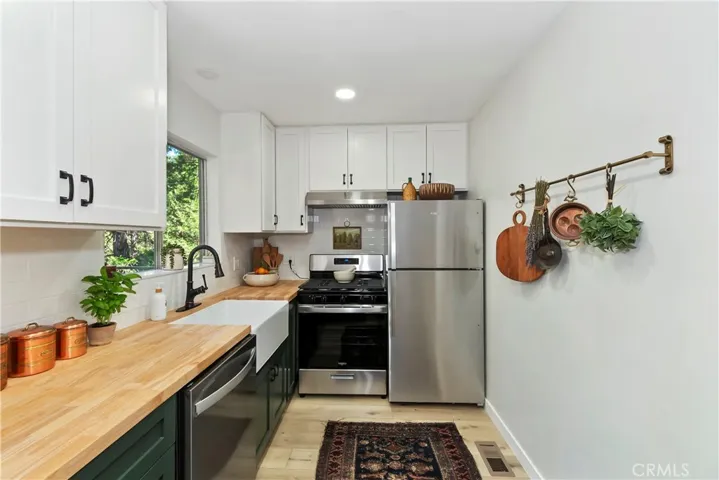Welcome to a beautifully remodeled mountain retreat nestled in Lake Arrowhead’s desirable Cottage Grove neighborhood and walking distance to the lake/village. This charming 3-bedroom, 2-bathroom home offers full Lake Rights. Step inside to find a warm, inviting interior featuring a cozy living room with fireplace, an upgraded open-concept kitchen with butcher block countertops plus farmhouse sink, and a spacious main-level primary suite with beautifully updated bathroom. Upstairs are two bright guest bedrooms with forest views, while the lower level offers a versatile bonus room perfect for entertainment or additional sleeping quarters. Enjoy serene mornings and evenings on two oversized decks surrounded by mature trees, ideal for relaxing or entertaining. Located just minutes from Lake Arrowhead Village, shops, and restaurants, and within the Arrowhead Woods community, this property offers both privacy and convenience. Whether you’re looking for a full-time residence, vacation home, or investment opportunity, this home delivers timeless mountain charm with modern comfort in one of Southern California’s most sought-after lake communities.