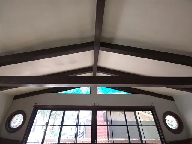 Situated just steps from Green Valley Lake, this mid-century mountain chalet offers a rare combination of setting, style, and accessibility. Built in 1962, the home reflects its era with exposed beam ceilings, natural wood interiors, and generous windows framing the surrounding pines. The south-facing orientation provides soft light throughout the day, creating a warm atmosphere across both levels of living space.