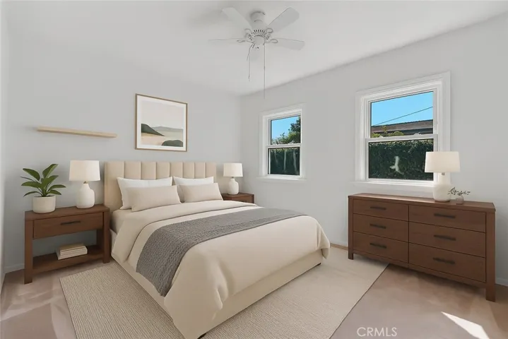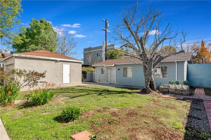 This beautifully updated, 3 bed, 2 bath, 1372 sq ft, 1940s bungalow with detached 2 bed, 1 bath, 710 sq ft Guesthouse/ADU (without permits), & separate 2-car garage, sits in a quiet residential neighborhood in the heart of Valley Glen. Lots of possibilities! Blending vintage appeal & modern convenience, the house boasts a newer AC, raised foundation, hardwood floors, decorative wood siding, & covered front porch, while a wide driveway with an RV/car gate provides access to the detached 2-car garage. Enter directly into a spacious, light-filled living room with a large picture window. A graceful archway connects the living & dining area seamlessly. The kitchen boasts a sleek, black & white aesthetic with recessed lighting, tile floors, white cabinets, a white tile backsplash, black granite counters, black appliances, & back door leading to the yard. Down the hall is a freshly updated ¾ bath with new counter, mirror & shower enclosure & an extra-large laundry room for added utility & storage. Two good-sized bedrooms share the hall bath while a sizable primary suite has brand new carpet, as well as dual walk-in closets, a glass slider to the yard, & an en-suite bath with new flooring, mirror, light fixture, counter, & faucet. Storage abounds throughout the house with closets, linen cabinets, a pantry, & the garage, making the most of the space! The spacious backyard includes several patio areas, walkways, a lawn, a mature shade tree, & abundant fruit trees allowing you to take advantage of fresh produce, better than a farmer’s market, just out your back door. A detached guest house adds versatility with an open-concept great room combining kitchen, dining, & living areas. The two guesthouse bedrooms both have mirrored closets & ceiling fans & share access to a full hall bath. The guest house has its own heater, AC, water heater, & storage shed, making it a perfect space as an ADU or casita, studio space, a home office, gym, or really, whatever you can imagine. A detached 2-car garage provides space for parking & storage. Take advantage of the R2 zoning in the area to further develop the property, utilize the existing guest house, or convert the detached garage to an additional ADU space, all to add additional means of income to the property. The home is well situated near to shopping, dining, entertainment, recreation, & major transportation routes. Don’t miss the opportunity to tailor the space to suit your needs & make this your new home!