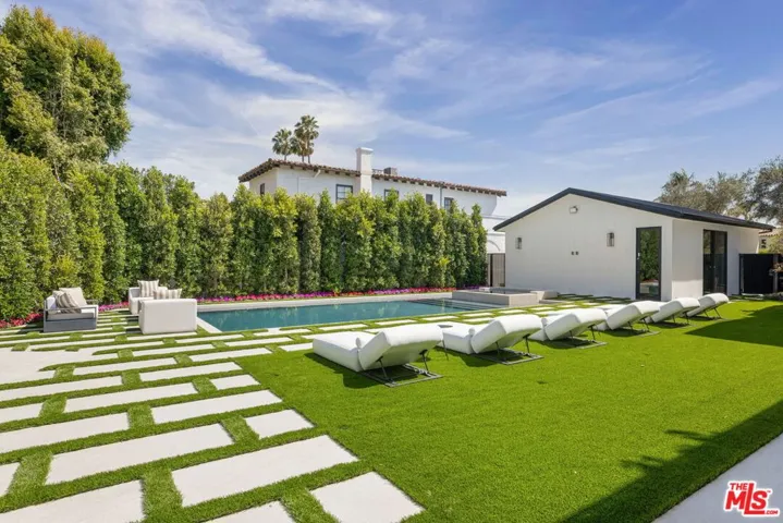 A commanding presence in the heart of prestigious Little Holmby, 10386 Strathmore Drive is a newly completed architectural estate that fuses organic modern design with stately proportions. Set on an exceptionally wide, flat lot, this gated 8-bedroom, 8.5-bathroom compound offers nearly 13,000 square feet of living space, including a fully detached 1-bedroom, 1-bathroom ADU. The entire property is enveloped by trees and meticulously landscaped gardens, offering a sense of seclusion and tranquility. Inside, a soaring double-height foyer introduces interiors bathed in natural light, where sculptural lines, warm wood tones, and artisan plasterwork create a space that’s both architectural and inviting. The expansive great room opens seamlessly to the outdoors, where a saltwater pool, spa, large patio, firepit lounge, and outdoor kitchen form a true backyard sanctuary. At the heart of the home lies a showpiece chef’s kitchen with dual stone islands, top-tier appliances, and a concealed secondary kitchen designed for staff or large-scale entertaining. The main level also includes a private office, home theater, oversized gym, and two ensuite guest suites. Upstairs, the primary bedroom wing offers a true sense of scale and serenity. Grand in size and meticulously finished, it features a fireplace, private terrace, spa-inspired bath with oversized shower, soaking tub, and dual vanities, along with two boutique-style walk-in closets. Four additional ensuite bedrooms and an oversized family room complete the upper level. The detached guest house is fully appointed with its own living room, kitchen, bedroom, and full bath. Two dual car garages, smart home technology, and gallery-worthy finishes complete this one-of-a-kind offering. Situated moments from Holmby Park, UCLA, and the city’s top schools, 10386 Strathmore represents a rare opportunity to own a newly built architectural estate in one of Los Angeles’ most sought-after neighborhoods- where timeless character meets modern luxury at scale.