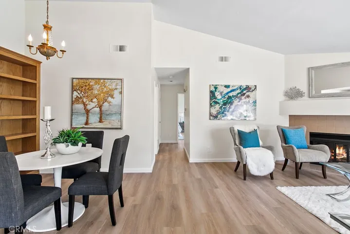 FHA APPROVED COMMUNITY. Gorgeous bright corner home with no one above or below. Top floor with beautiful vaulted ceilings with a corner lot location makes this home very bright all the time. Owner just spent over $20,000.00 in upgrading to brand new LVP flooring, painting, mirrored closet doors, new window coverings, and reglazed bathtub. Just move right in. Primary bedroom also has vaulted ceilings with a great private balcony. One car attached garage right below the home. Great balcony at the entry makes this home great for entertaining with its indoor outdoor space. Association offers pool and tennis. Indoor laundry with washer and dryer. Low taxes and no Mello roos. Walking distance to shopping and restaurants.