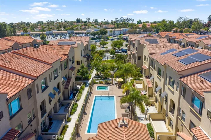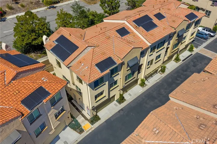 This smart home is loaded with tech-savvy upgrades, including built-in WiFi, Ring doorbell, smart thermostat, and energy-efficient features like solar panels, tankless water heater, water softener, ceiling fans, and central A/C. The spacious primary suite includes a walk-in closet and dual-sink quartz vanity, with laundry conveniently located on the upper level. Enjoy an attached 2-car garage, only one shared wall, and access to resort-style amenities including a pool, spa, BBQ area, and landscaped grounds.