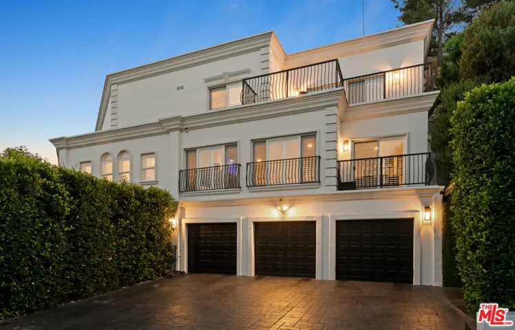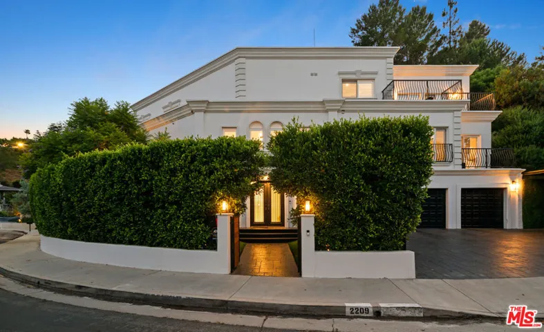 Wonderfully expansive Mediterranean-style home uniquely sited at an east-west curve on Banyan Drive in Mandeville Canyon. Three stories, with a double-height entry, 2209 Banyan boasts vast entertainment spaces, many with grand ebony-colored fireplaces, the formal living room is host to a custom-built marble-topped wet bar, elegant coving, wainscoting, and banks of modern bespoke shuttered windows. The family room with tray ceiling leads to a beautifully appointed chef’s kitchen with 60″ dual oven range, wine cooler, generous pull-up island, and access to outside. This bright 5-bedroom, 5-bathroom home has undergone a comprehensive list of renovations and upgrades with unmatched quality throughout; no corner of this stand-out property or grounds has been left untouched. Many of the bedrooms feature fireplaces, large closets, detailed ceilings, and walk-out balconies, some with city or mountain views. En-suite features include marble floors and vanities, as well as a combination of stand-alone bathtubs and walk-in showers. Privacy abounds in the unique tiered gardens, with vignettes that house a hot tub, red-light sauna, sheltered seating, and an outstanding pavilion over an outdoor kitchen with counter-height dining for eight and wall-mounted TV, perfect for viewing parties and sports events. Other standout features include an elevatorrecently serviced and wallpaperedan Lutron Smart lighting system (app-controlled), electronic blinds in the primary suite, and a three-car garage with Tesla charging station. This home is close to the Westridge Trailhead, a paradise for hikers and bikers alike, and is situated in a quiet, notable neighborhood of Brentwood