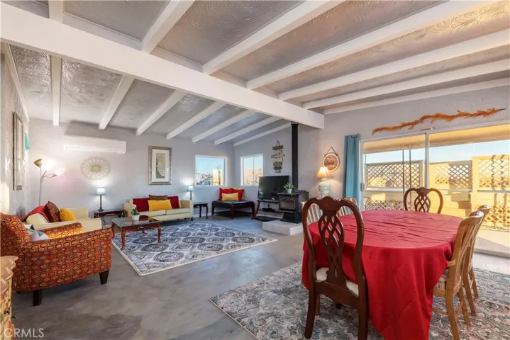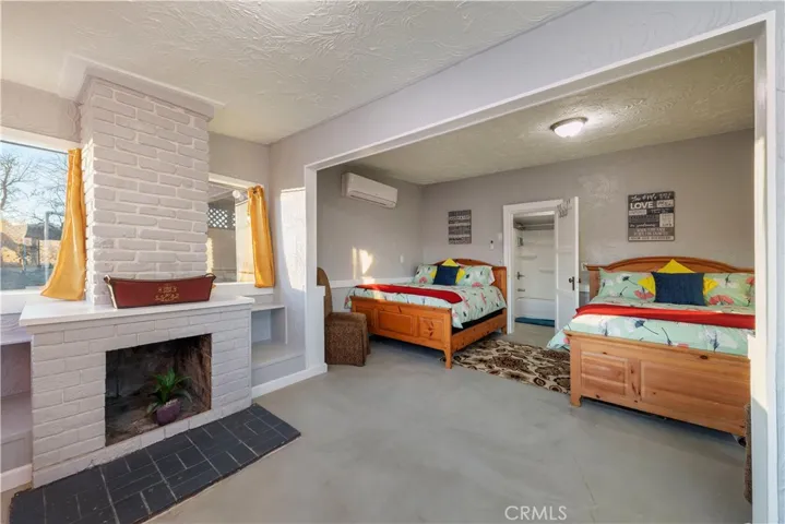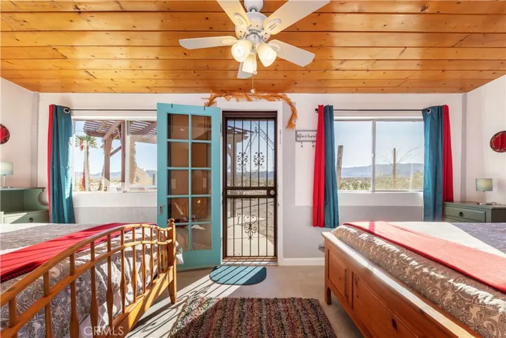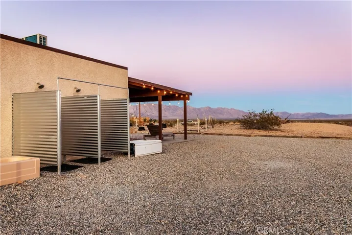 Escape to a secluded 20-acre corporate retreat compound designed for privacy and serenity. This exceptional property boasts three homes and 4 APNs, a tranquil yoga room, and two inviting pools, creating the perfect setting for both relaxation and recreation. The central building features a sunlit yoga studio with sliding glass doors that open to stunning views of the expansive desert landscape. A bright kitchen, complete with a dining table, lounge chairs, and sliding glass doors, offers an ideal space for meals or quiet moments with tea. The main house includes an open bedroom, two bathrooms with showers, a covered patio lounge, and two outdoor showers. Step outside to a shaded patio that leads to a pool and deck, where you can unwind while taking in the vast desert scenery. An exterior shaded area features a private outdoor bathroom equipped with a sink, shower, and toilet.