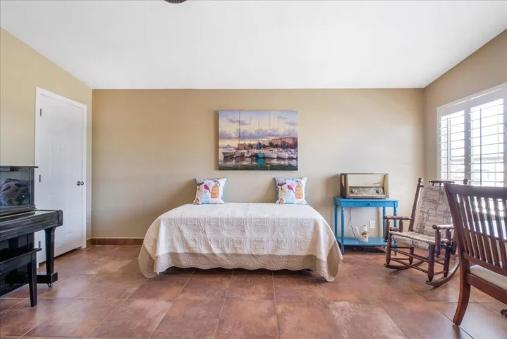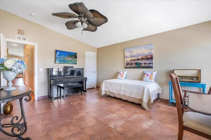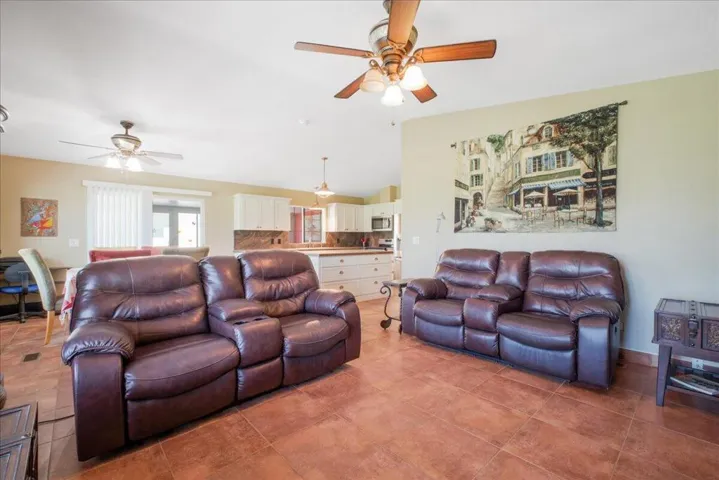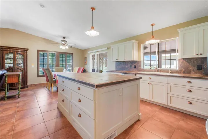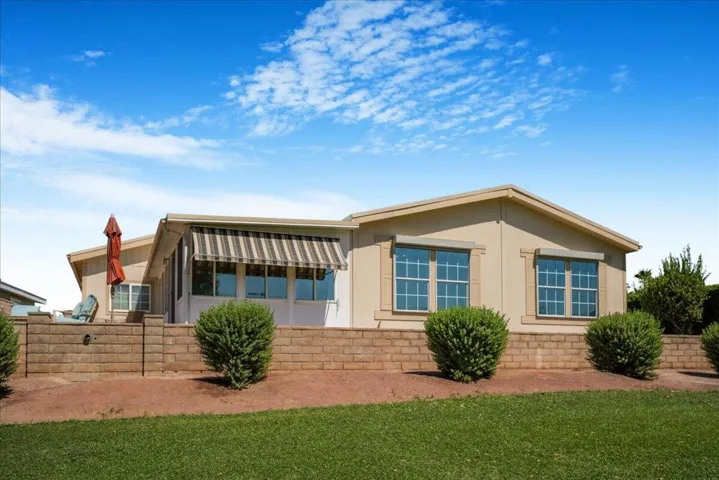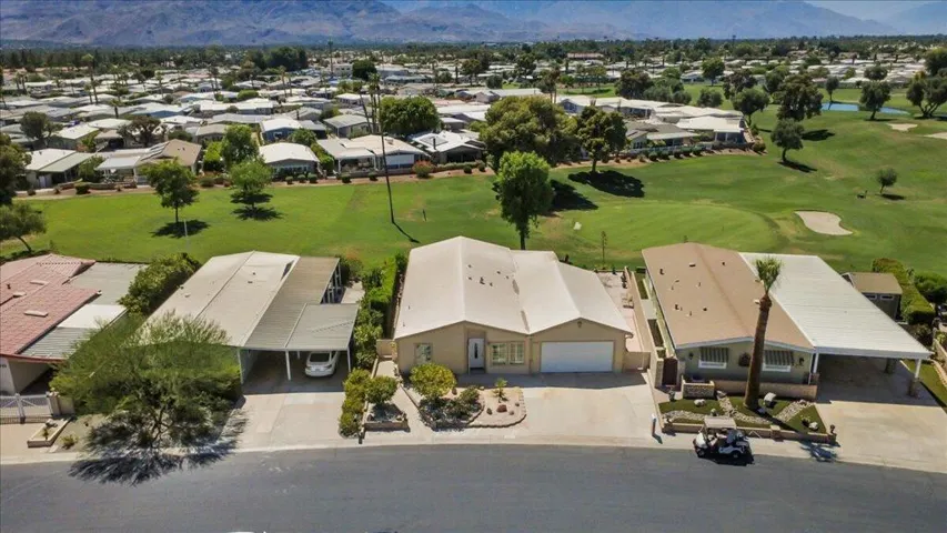 This home is located in a 55+ senior community with a beautiful view of the golf course, green belt and chipping green along with a Mountain View! Home has been updated and shows very well. The roof was sprayed in 2023, new hot water heater, gas appliances were replaced in 2022. Tile flooring thru out the home, the master bath has 2×4 tile and looks very nice. Dual pane windows, shutters, ceiling fans, there are outside electric shutters on the golf course side of the home. Under cabinet lighting in the kitchen, a large center island with plenty of drawers for storage and soft close cabinets. Home has been painted inside and outside. There is an outdoor screened in room for entertaining with a wine fridge. The outside patio is concrete and has ample room for entertaining! Home comes partially furnished and there is a golf cart with lithium that is negotiable outside of escrow! Home has a large garage that will fit an auto and golf cart inside. There is an enclosed office room and laundry room. High vaulted ceilings. The low Hoa monthly dues of $400 includes golf, trash, cable tv and internet. 24 hr security, 3 pools with one for families, indoor shuffle board, There is a pro shop, restaurant, bar and banquet room. There are many clubs to join like bocce ball and pickleball to name a few! Buyer to pay one time(RRA) Reserve Replenishment Assessment fee of $2400 equal to 6 months HOA dues.