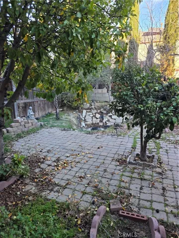 The big yard is fully landscaped with low-maintenance brick and concrete, designed to conserve water and still have room for fruit trees…