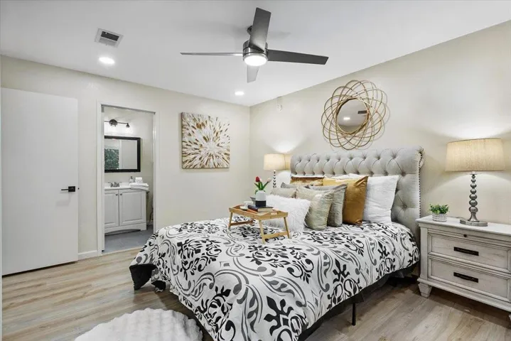 New Improved Price!!! Welcome to this charming 2-bedroom, 2-bathroom home nestled in the vibrant city of San Jose. Offering 975 square feet of comfortable living space, this residence features large, spacious bedrooms with recessed lighting. Appliances include a dishwasher, garbage disposal, microwave, electric oven range, and refrigerator. Enjoy the convenience of an in-unit laundry with electric hookup (220V), full-sized washer and dryer. The home boasts stylish vinyl flooring throughout the bedrooms and living room, adding a touch of elegance to the living areas. This residence further includes access to a community facility with a fenced-in pool and in-ground spa, perfect for relaxation and recreation. With central forced air heating and cooling options like ceiling fans and window/wall units, this home offers a perfect blend of comfort and style. The Alum Rock Union Elementary School District serves the area, educational resources for families.